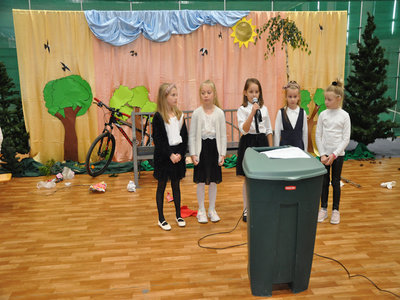 Apel prowadziły uczennice klasy VIII c: Maja Kulka i Natalia Niwińska. Z okazji Akcji „Sprzątanie Świata” zorganizowano konkurs plastyczno-techniczny pt. „ Drugie życie naszych śmieci”, w którym wzięło udział 42. uczniów klas I-III. Prace wykonane były w różnych technikach i formatach z wykorzystaniem różnorodnych pomysłów z zastosowaniem wielu ciekawych środków plastycznych. Wszystkie zgromadzone prace zostały wyeksponowane na wystawie w holu naszej szkoły. Uczniowie naszej szkoły uczestniczyli też czynnie w akcji Clean up the World. 16 września uczniowie klas III wybrali się na sprzątanie skweru przy ul. Magazynowej i terenu wokół kościoła. Klasy II porządkowały park „ Na Skarpie”, ul. Szpitalną, ul. Pocztową, a kl. I - plac dożynkowy, teren zielony przy ul. Pocztowej. 24 września 40 uczniów udało się do Porostu i tradycyjnie usuwało śmieci z brzegów Jeziora Chlewo Wielkie. W Bobolicach zebrano 10 dużych worków (120 litrowych), a w Poroście - 8 worków śmieci. Na zakończenie sprzątania zorganizowano ognisko połączone z pieczeniem kiełbasek. Codziennie każdy z nas produkuje niewyobrażalną ilość odpadów. Z danych zebranych przez Bank Światowy wynika, że w 2016 roku było to średnio 800 gramów śmieci w przypadku jednej osoby w ciągu dnia. Niektórzy produkują ich aż 5 kilogramów w ciągu dnia. Jeśli nie zmienimy nawyków, w 2030 roku będziemy potrzebowali więcej niż dwóch planet do przetrwania. Jeśli zniszczymy nasz świat, zniszczymy naszą przyszłość.
