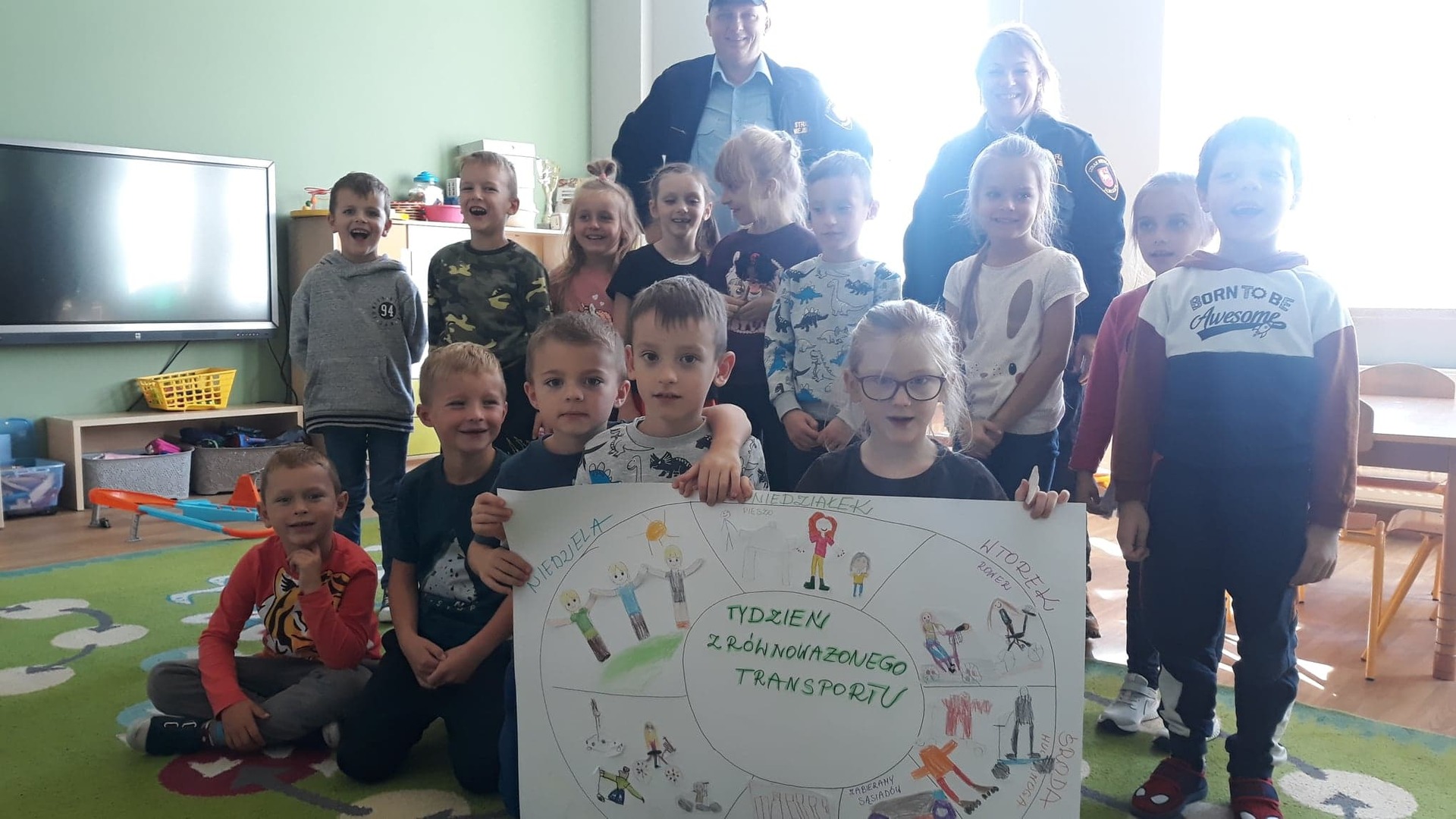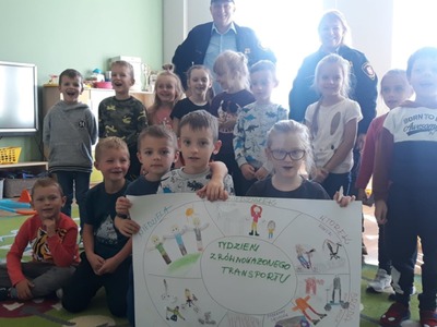 22 września 2022 r. dzieci z grupy "Tygryski" w Przedszkolu w Bobolicach spotkały się z przedstawicielami Straży Miejskiej w Bobolicach w ramach Europejskiego Tygodnia Zrównoważonego Transportu. Głównym celem inicjatywy jest zachęcanie do zmiany niekorzystnych dla zdrowia i środowiska przyzwyczajeń. Konkretnie chodzi o wybieranie ekologicznych środków podróżowania, np. roweru czy komunikacji miejskiej. A jeśli już ktoś musi jechać do pracywłasnym samochodem, warto znaleźć współpasażerów. Wszędzie, gdzie możemy dostać się na piechotę, warto skorzystać właśnie z takich opcji. Podczas spotkania dzieci dowiedziały się jak zachować bezpieczeństwo w ruchu drogowym oraz jak bezpiecznie bawić się na dworze. Na koniec zajęć przedszkolaki wykonały wspólnie plakat dotyczący sposobów poruszania się bez samochodu.
