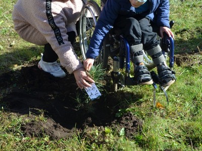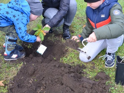 Dzieci z Ko艂a LOP OREW Bobolice z okazji Dnia Drzewa posadzi艂y przy szkole swoje sadzonki drzew馃尦馃尡: buka, d臋ba, sosn臋 i jod艂臋馃槏