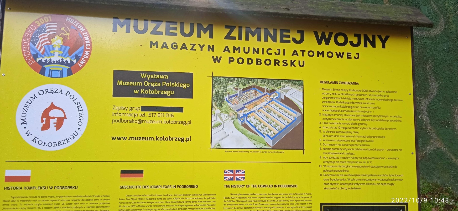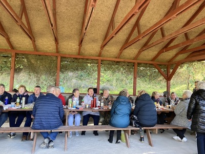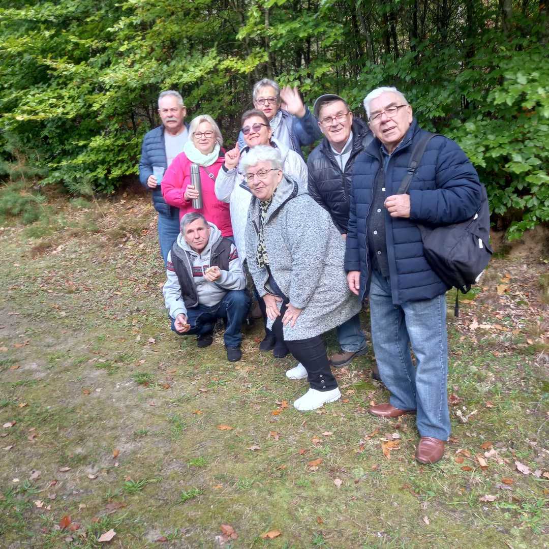 W piękną słoneczną niedzielę (9 października) emeryci z Koła nr 1 w Bobolicach wyjechali do Podborska, niedaleko Białogardu, celem zwiedzenia Muzeum Zimnej Wojny. Obiekty te jako schrony-magazyny to jedyne relikty po atomowym arsenale w Polsce, które zachowały się w niemal nienaruszonym stanie. W jego wnętrzu obejrzeliśmy komplet instalacji zapewniających możliwości bezpiecznej służby załodze, pomieszczenia magazynowe, halę przeładunkową z nadalsprawnymi urządzeniami służącymi do przemieszczania wózków z głowicami atomowymi. Pan przewodnik przybliżył nam nie tylko dzieje samej bazy, ale też zimnej wojny na terenie Pomorza Zachodniego i całego kraju. Po godzinnej prawdziwej lekcji historii udaliśmy się w dalszą podróż, a przystankiem były Stawy Paciorkowe w pobliżu Tyczewa. Stawy w ilości 12 sztuk połączone ze sobą tworzą doskonałe miejsce do spacerów nad wodą w malowniczej okolicy, w sąsiedztwie zróżnicowanych drzewostanów pod względem wieku i składów gatunkowych. Podczas spaceru, niektórzy nasi wycieczkowicze znaleźli wspaniałe okazy prawdziwków, podgrzybków a także rydza. W drodze powrotnej zatrzymaliśmy się w miejscowości Ujazd. Dzięki uprzejmości Pani sołtys, a także naszej koleżance z Koła – Basi, mogliśmy zorganizować ognisko, popiec kiełbaski i przy wspólnym śpiewie spędzić słoneczne niedzielne popołudnie.