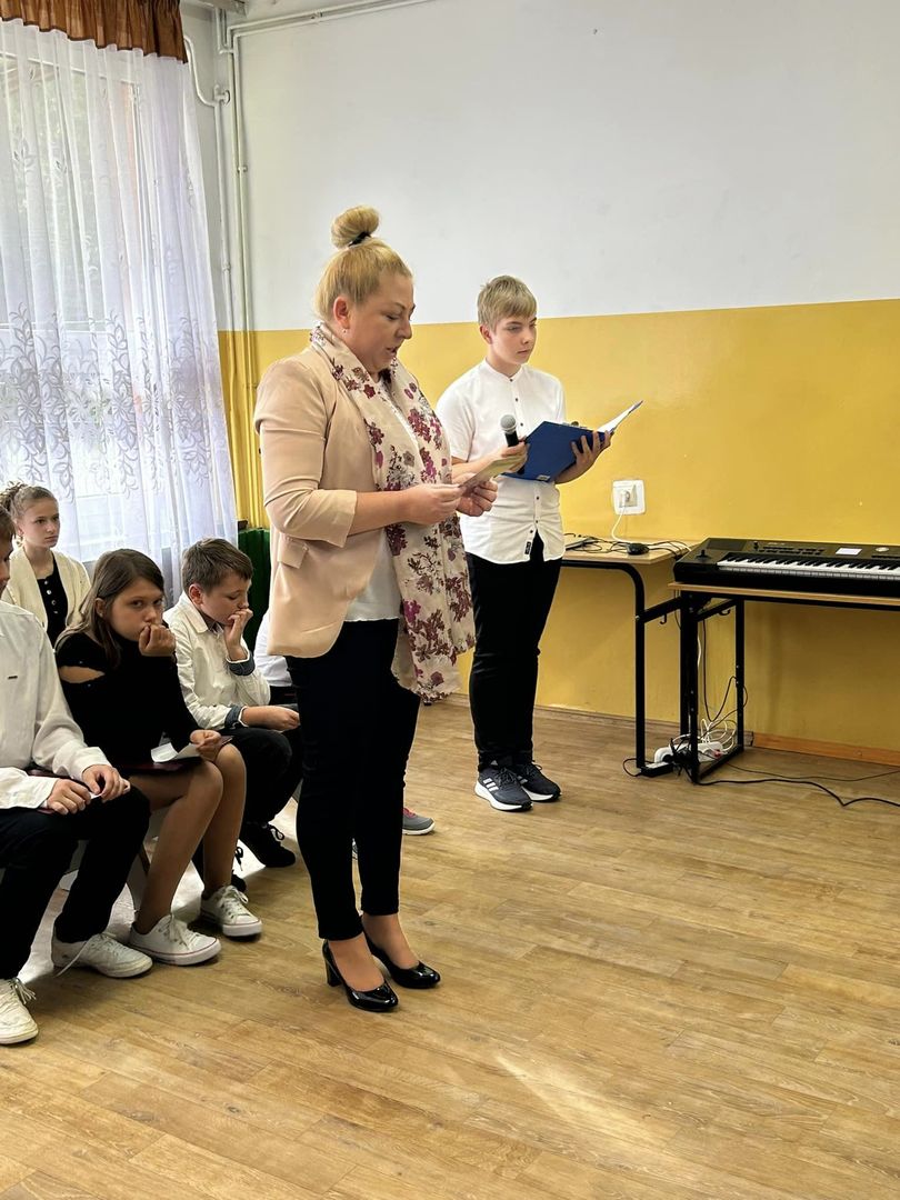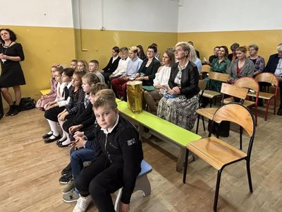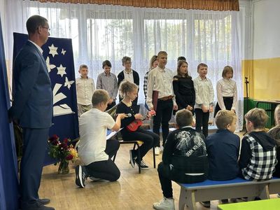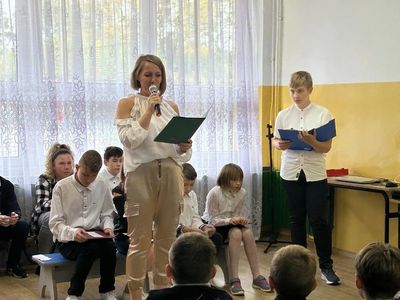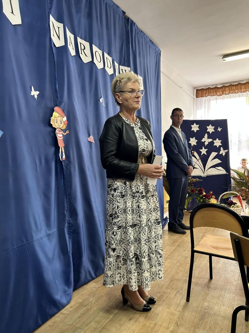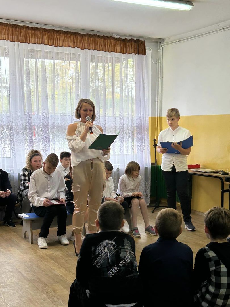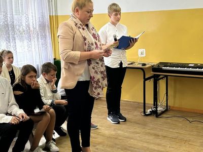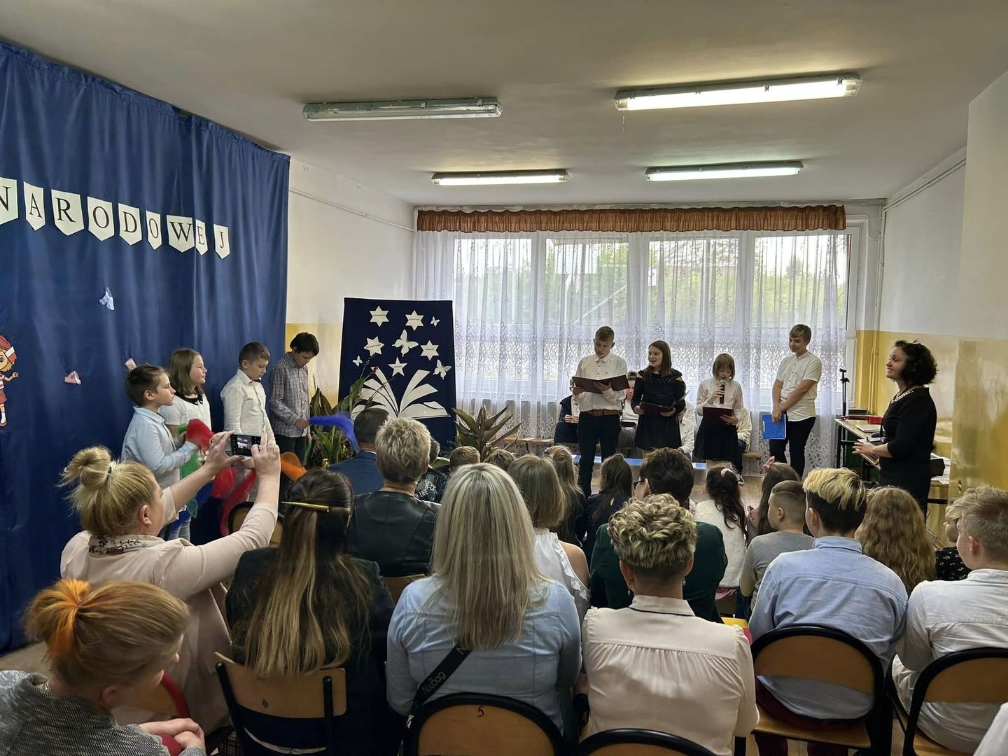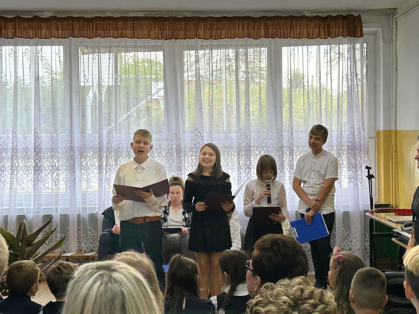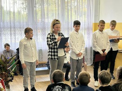 do nauczycieli. Wysłuchać mogliśmy również pięknych wierszy i piosenek. Pani Izabella Mirota wraz z naszymi uczniami przygotowała piosenkę o Kłanińskiej szkole, którą zaśpiewaliśmy wszyscy razem.