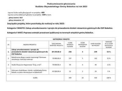 Przedstawiamy wyniki głosowania w tegorocznej edycji Budżetu Obywatelskiego Gminy Bobolice.