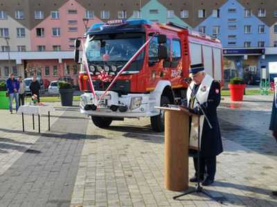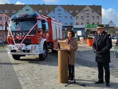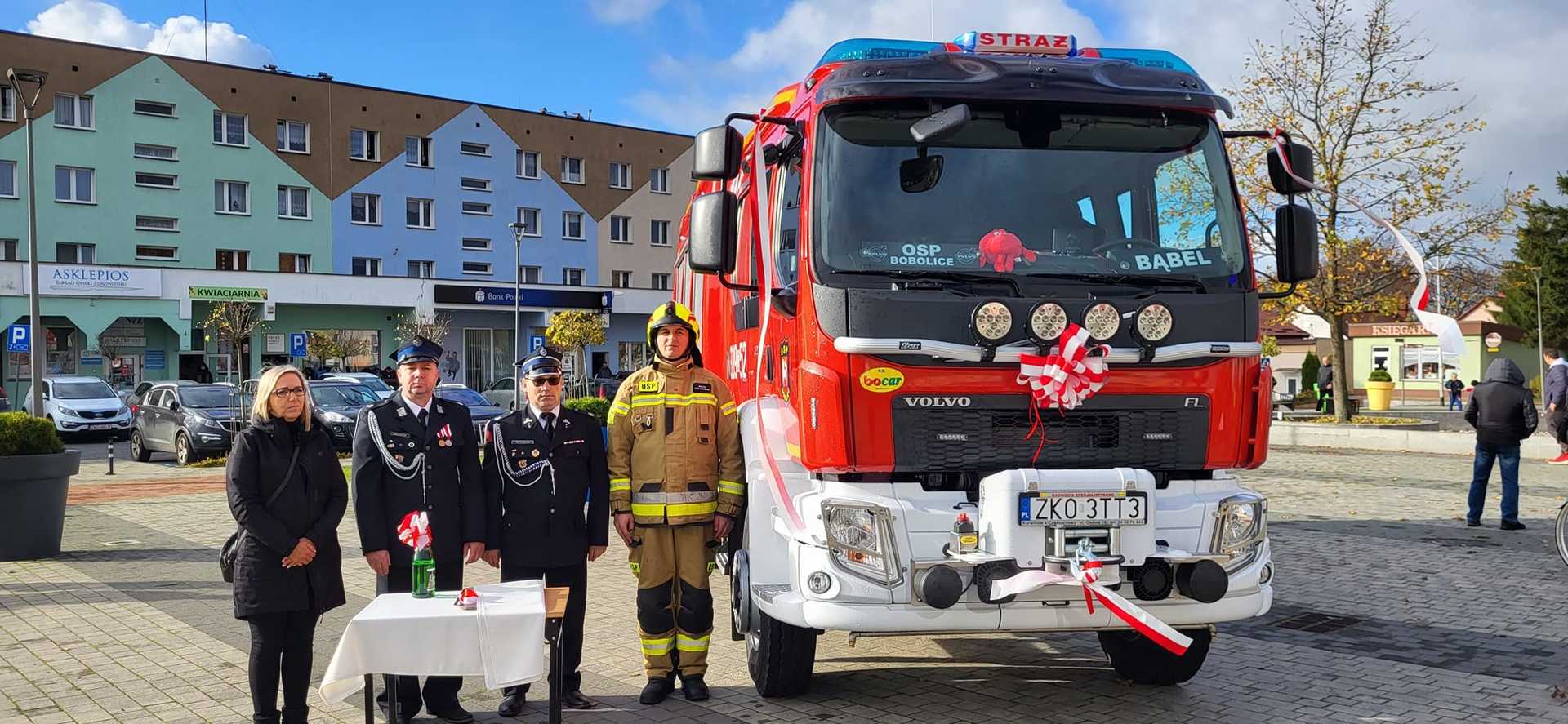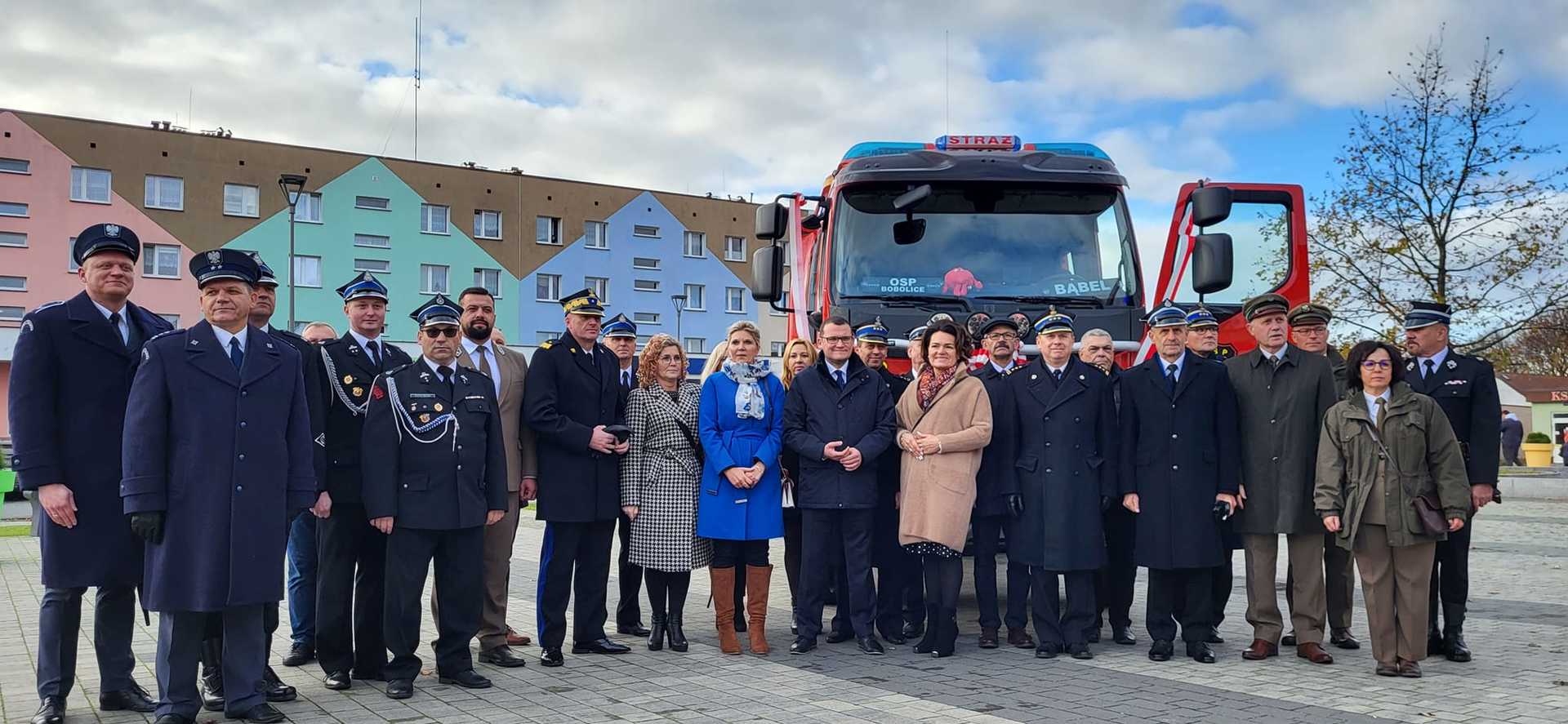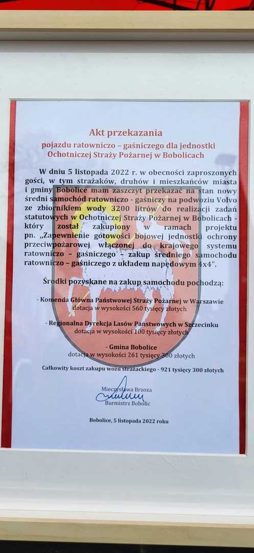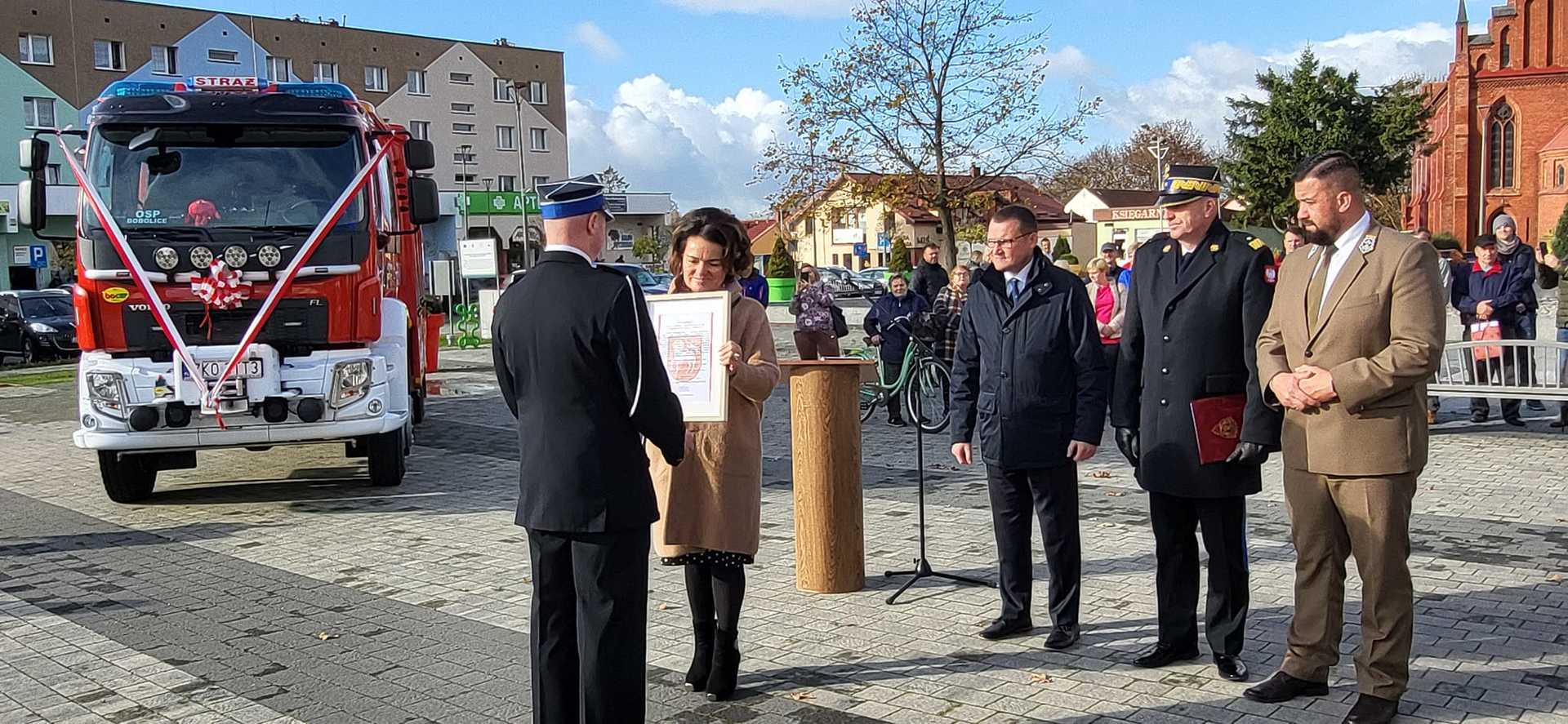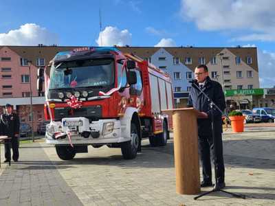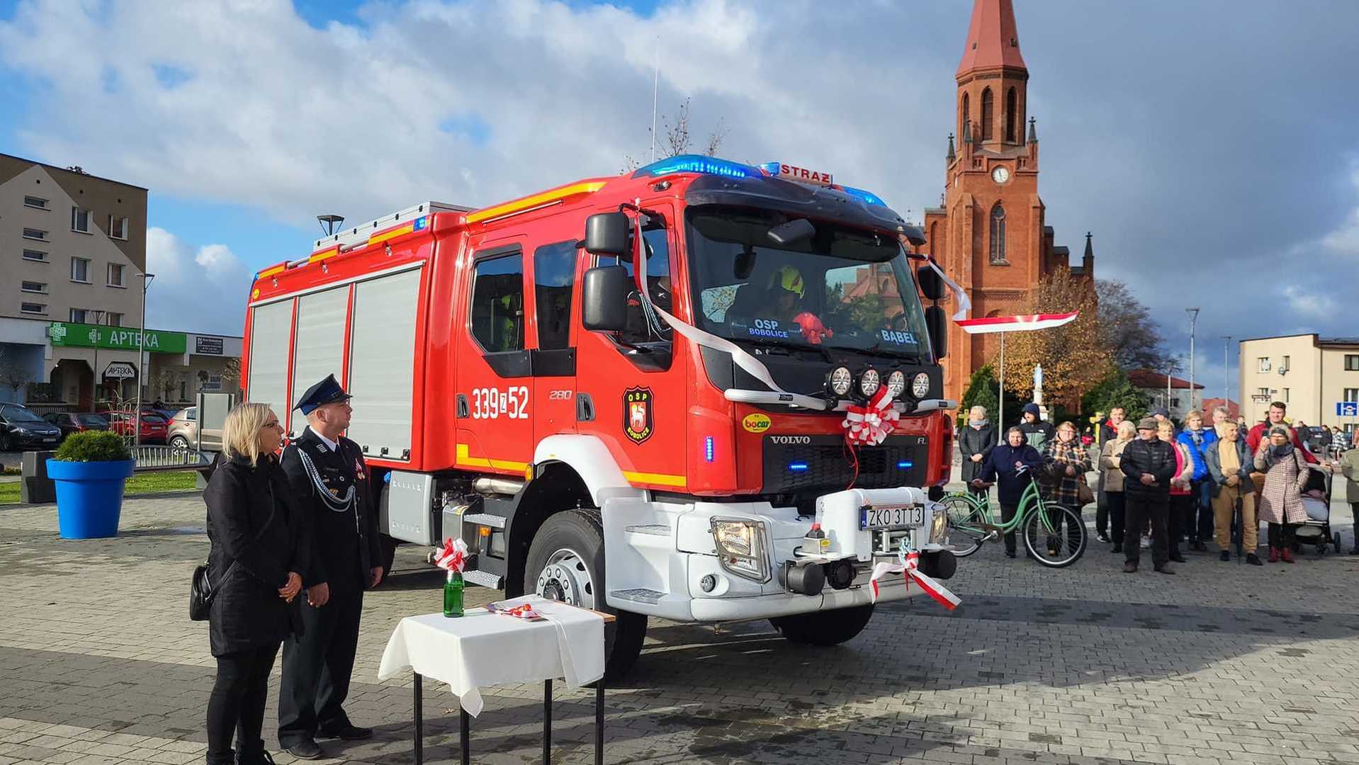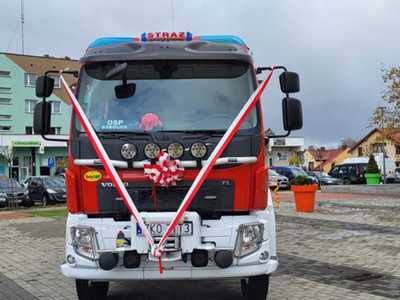 05 listopada 2022 roku na Rynku Miejskim w Bobolicach miała miejsce uroczystość poświęcenia i przekazania druhom z jednostki OSP Bobolice nowego średniego samochodu ratowniczo - gaśniczego