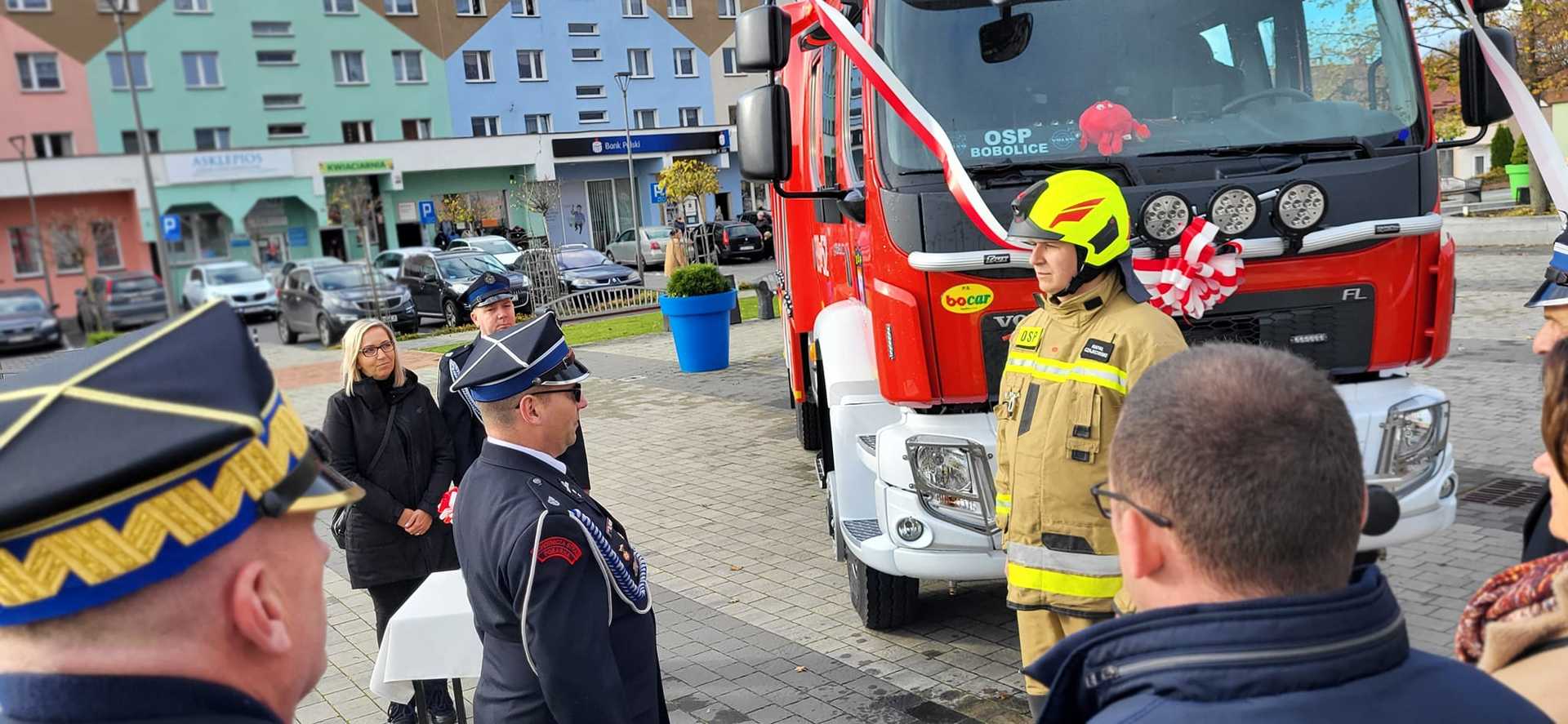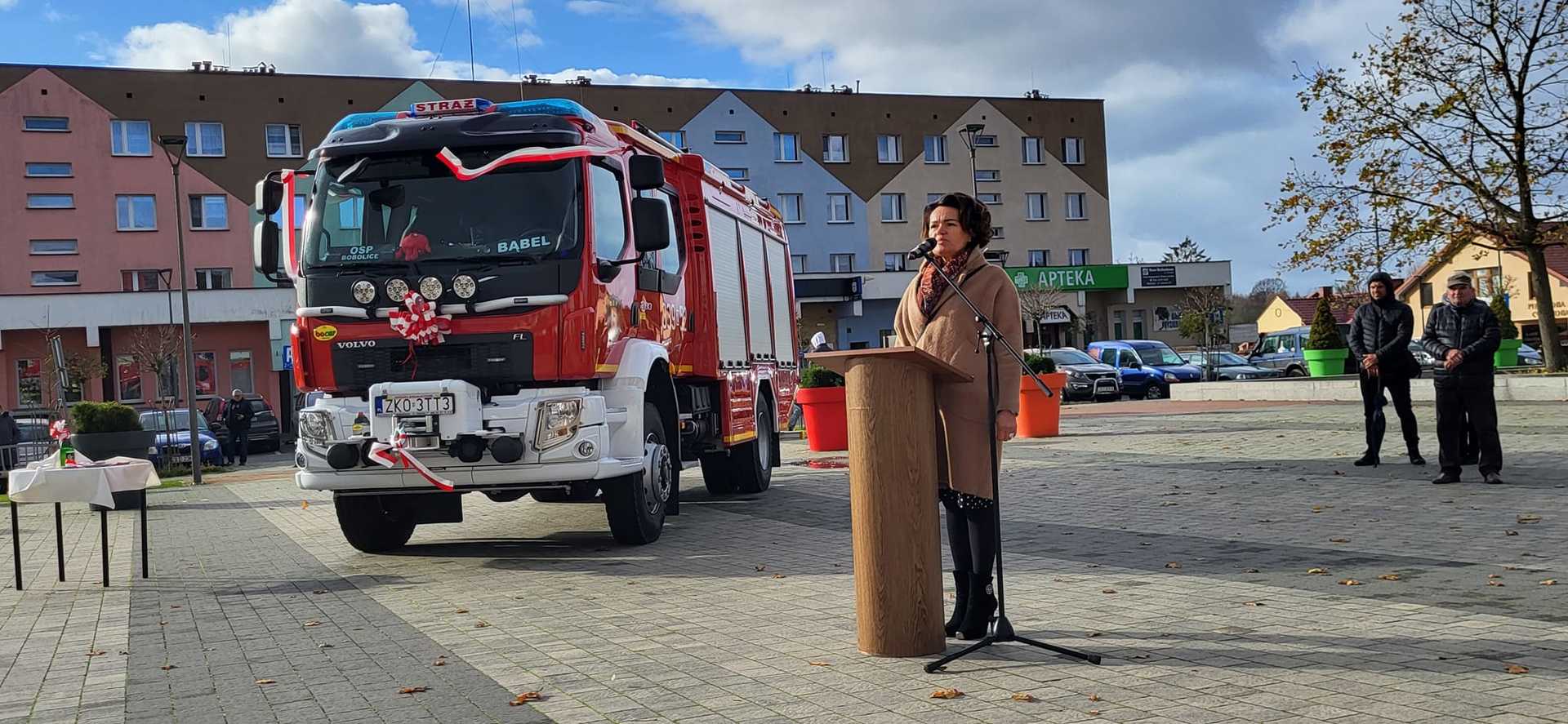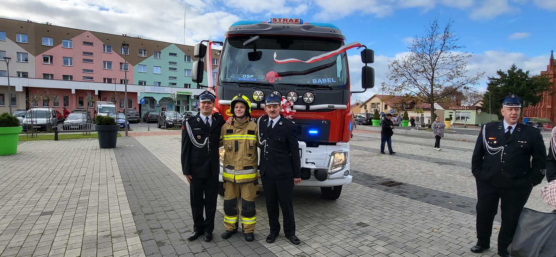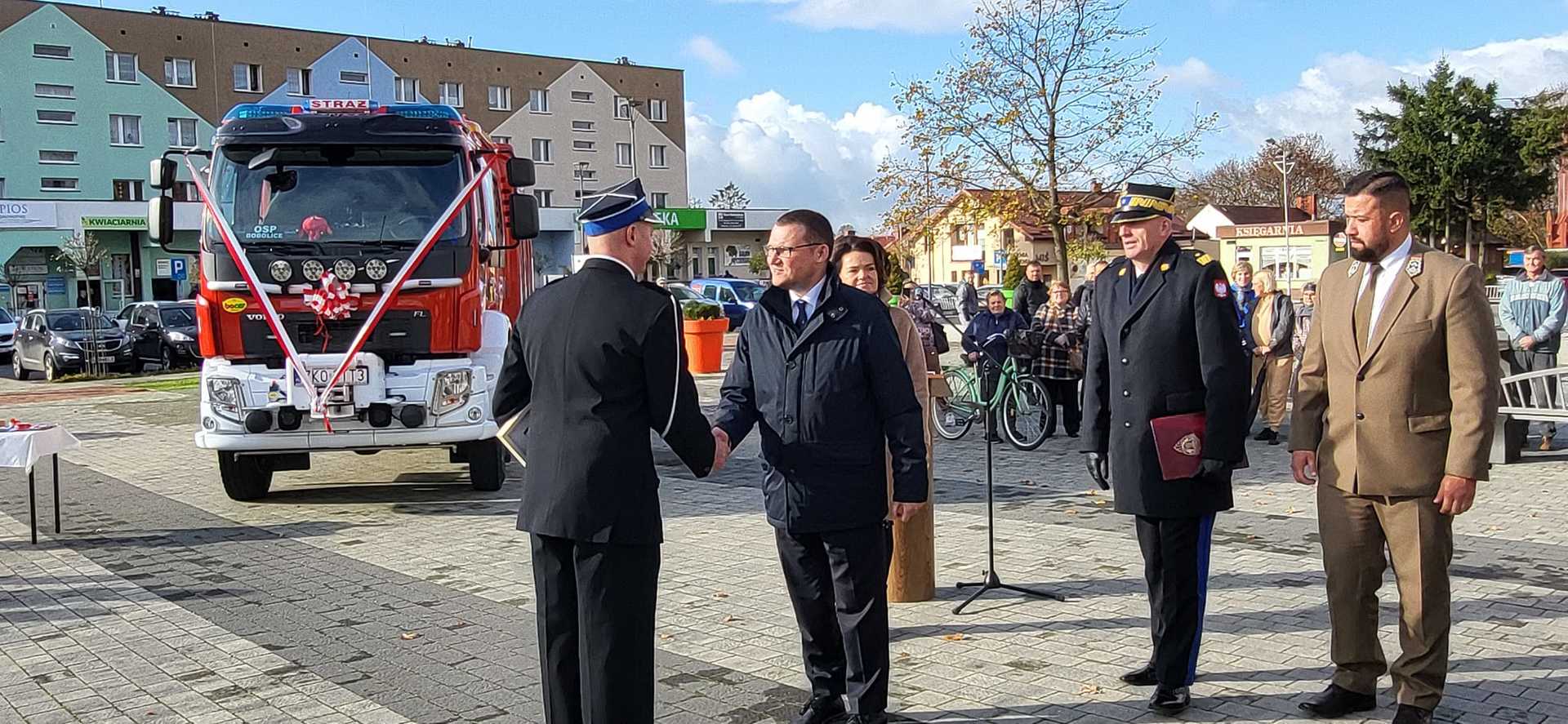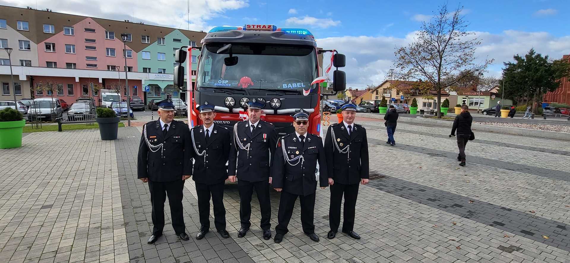 05 listopada 2022 roku na Rynku Miejskim w Bobolicach miała miejsce uroczystość poświęcenia i przekazania druhom z jednostki OSP Bobolice nowego średniego samochodu ratowniczo - gaśniczego