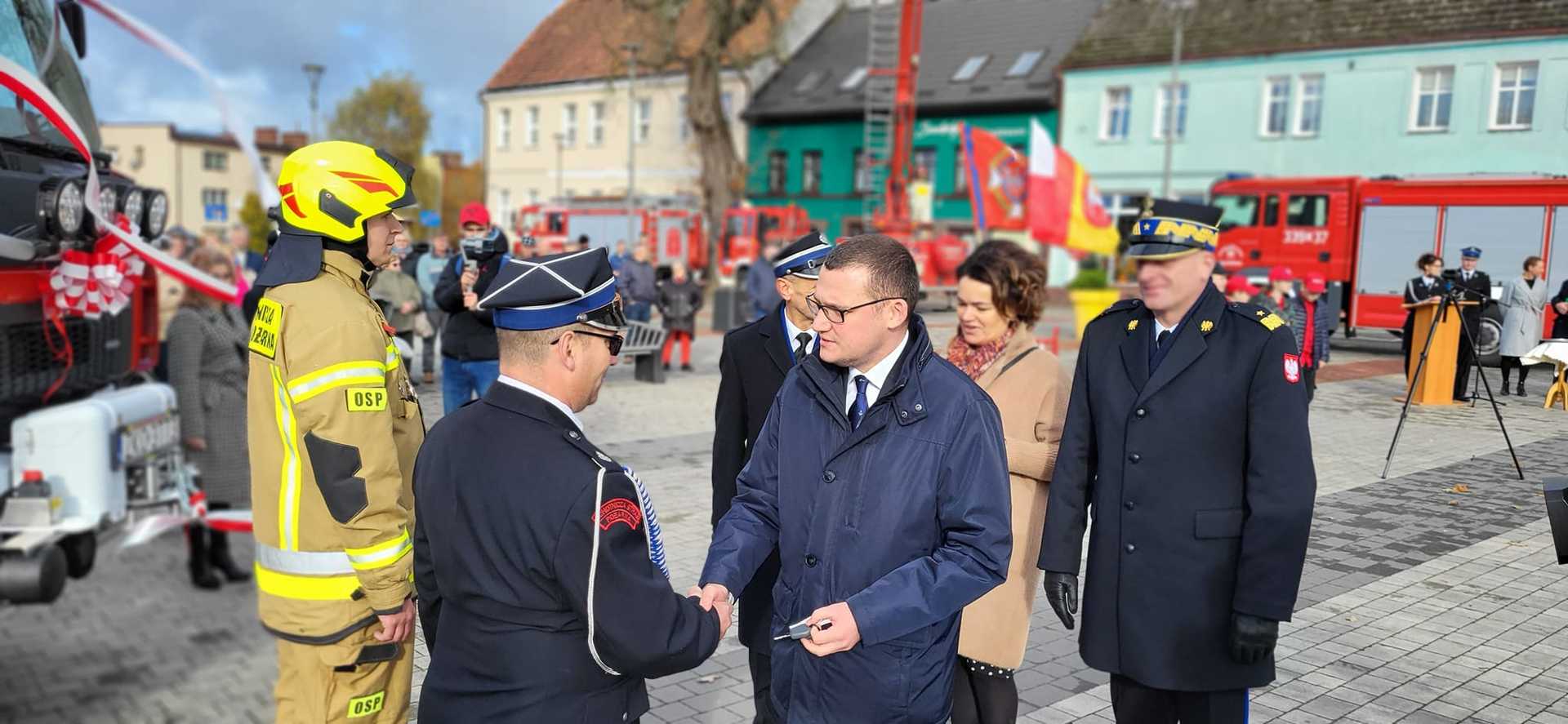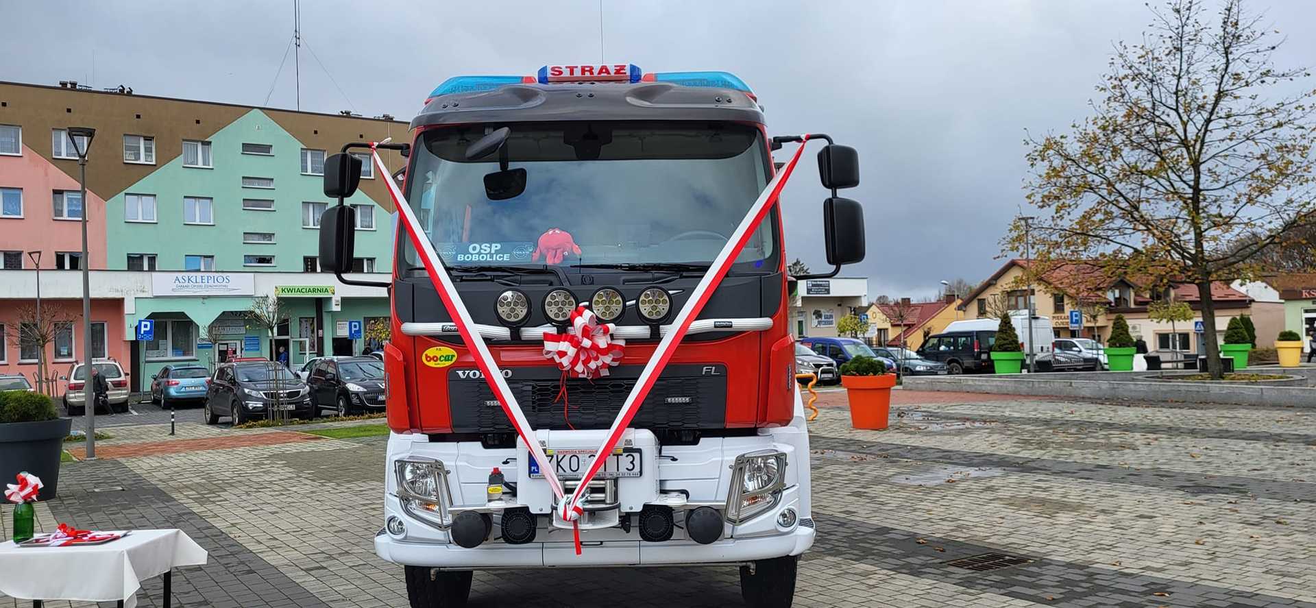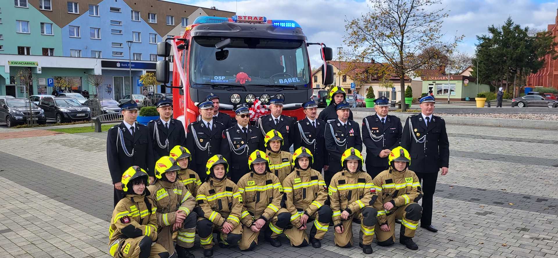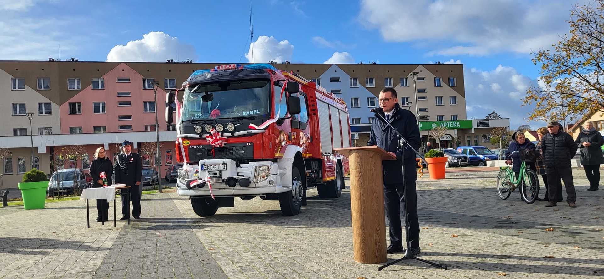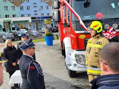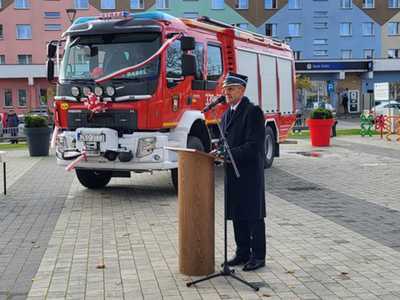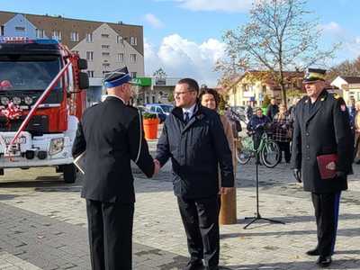 05 listopada 2022 roku na Rynku Miejskim w Bobolicach miała miejsce uroczystość poświęcenia i przekazania druhom z jednostki OSP Bobolice nowego średniego samochodu ratowniczo - gaśniczego