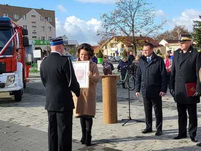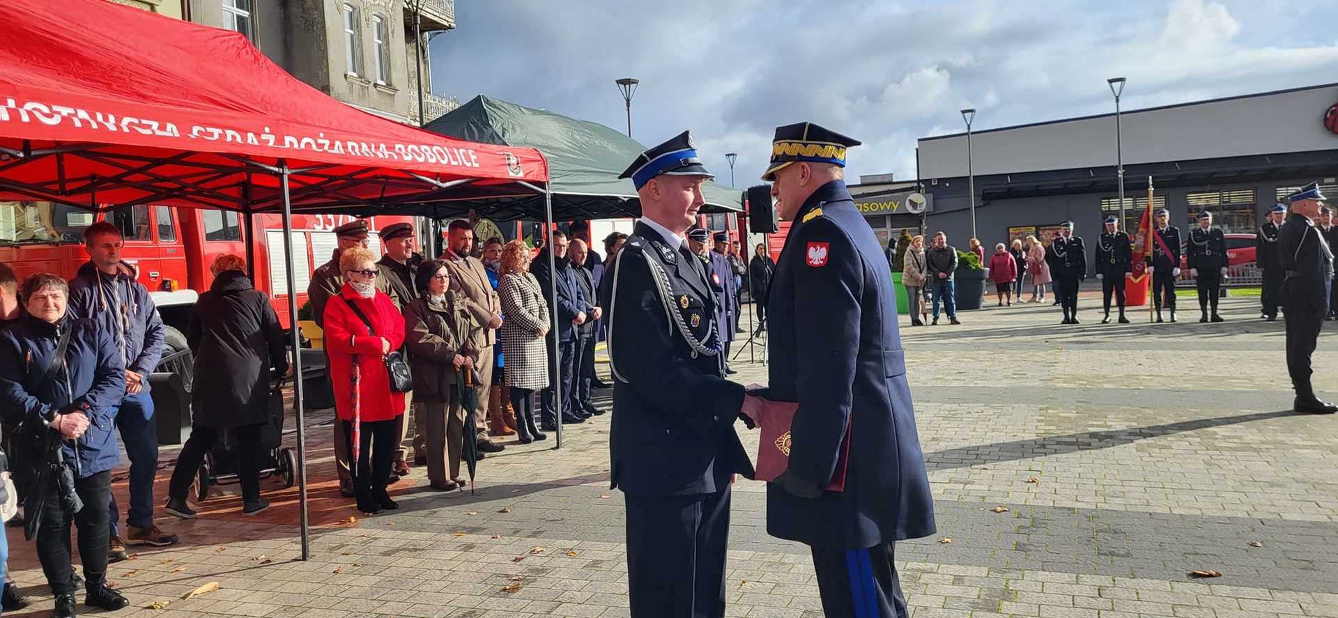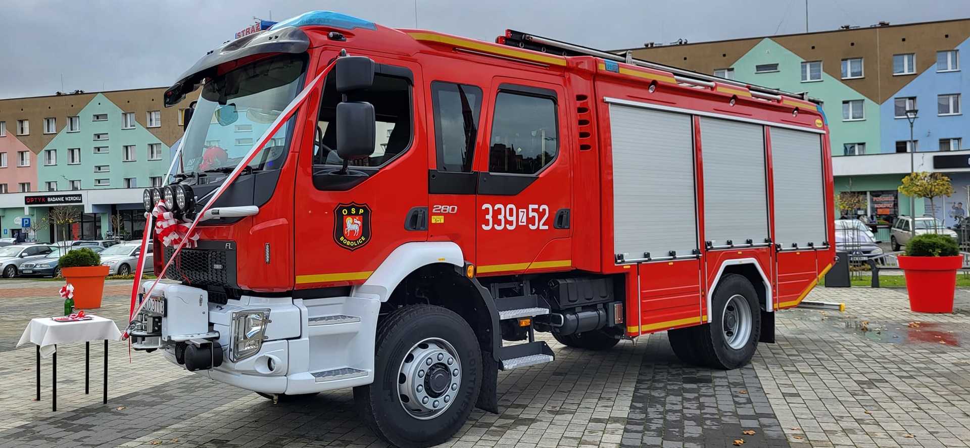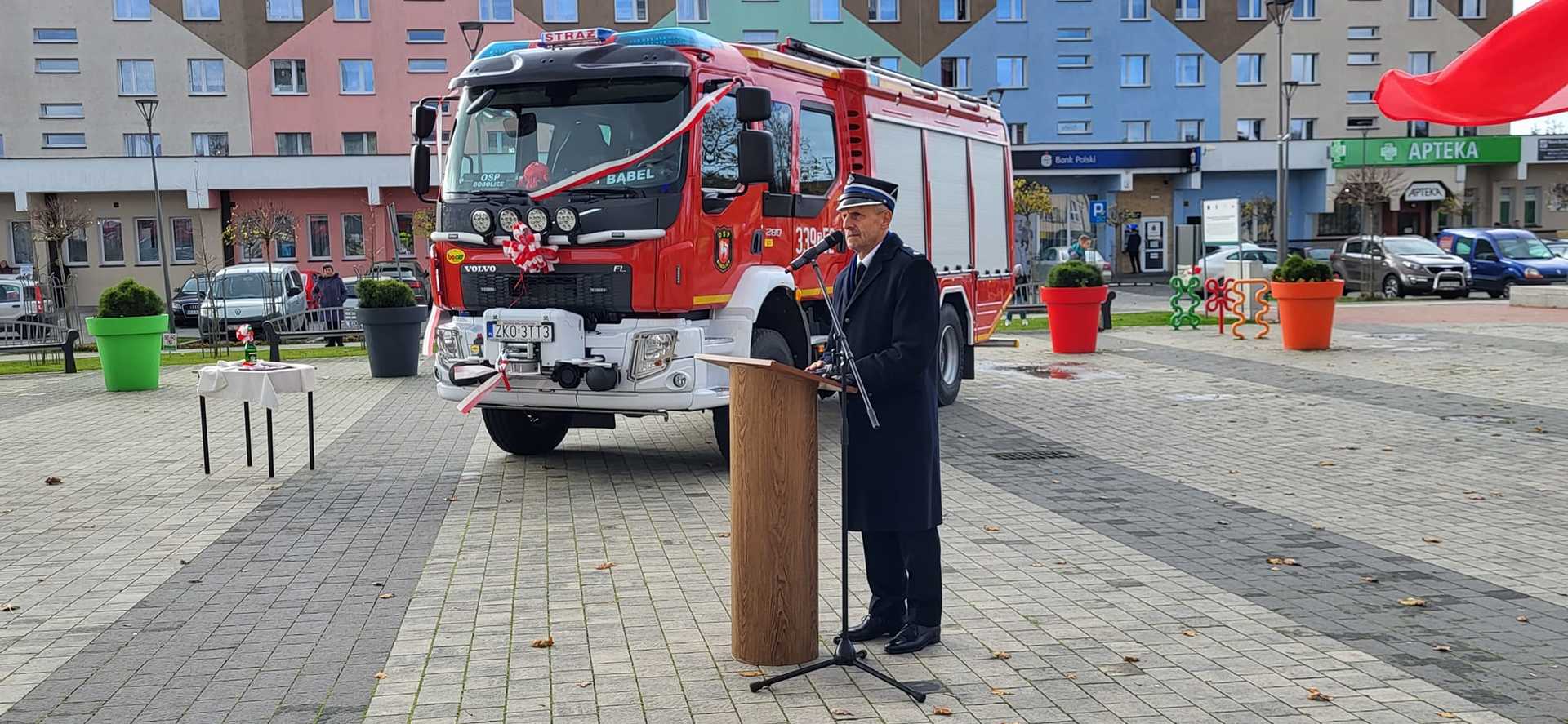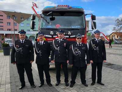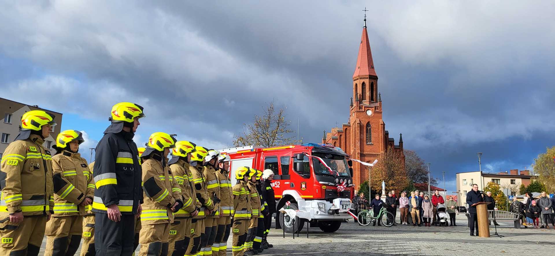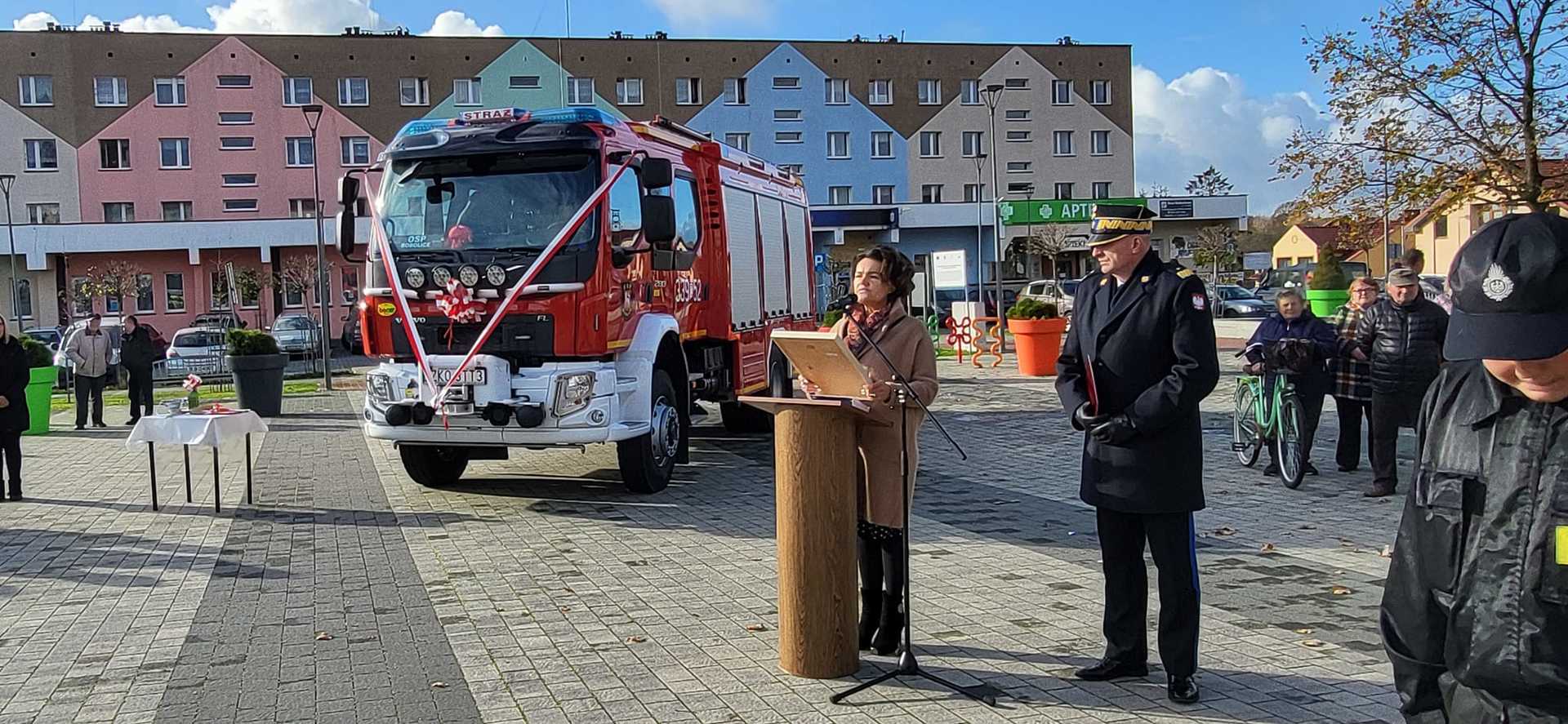 05 listopada 2022 roku na Rynku Miejskim w Bobolicach miała miejsce uroczystość poświęcenia i przekazania druhom z jednostki OSP Bobolice nowego średniego samochodu ratowniczo - gaśniczego