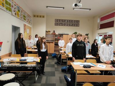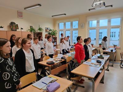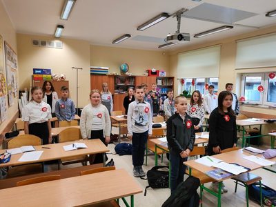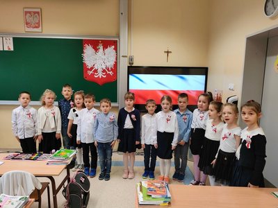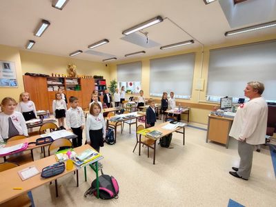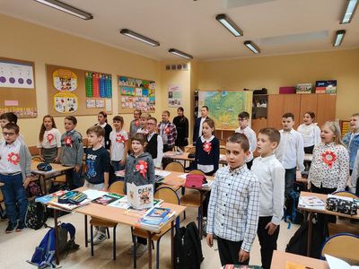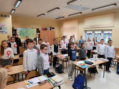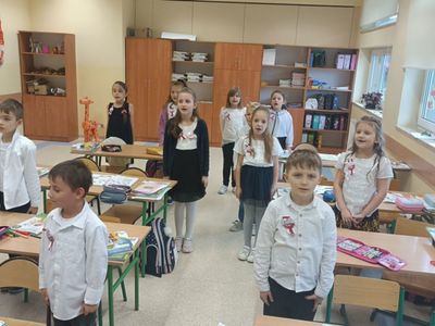Udział Szkoły Podstawowej im Henryka Sienkiewicza w Bobolicach w ogólnopolskiej akcji " Szkoła do Hymnu".