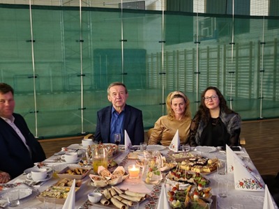 Następnie, aby tradycji stało się zadość, rozpoczęto świętowanie. Były oklaski, tańce, śpiewanie. Uśmiechy gości uświetniły całe wydarzenie. A zdjęcia z fotobudki, za którą dziękujemy Panu Piotrowi Adamusowi - Radnemu Rady Miejskiej, upamiętnią ten czas na zawsze.