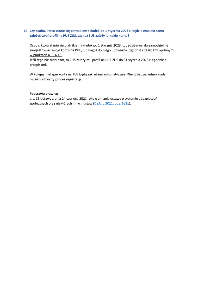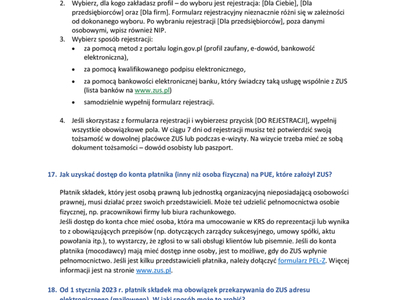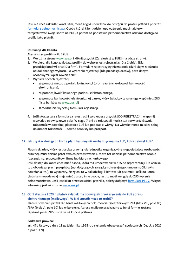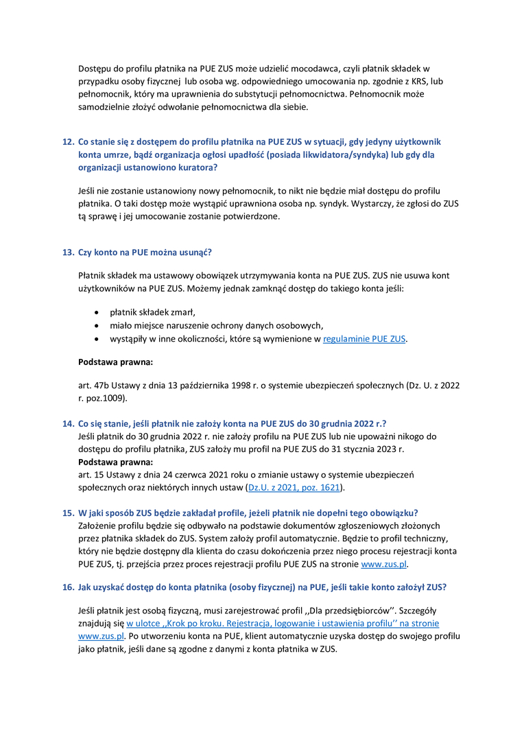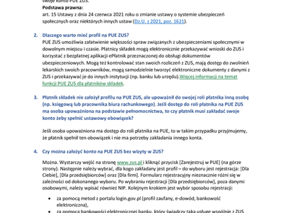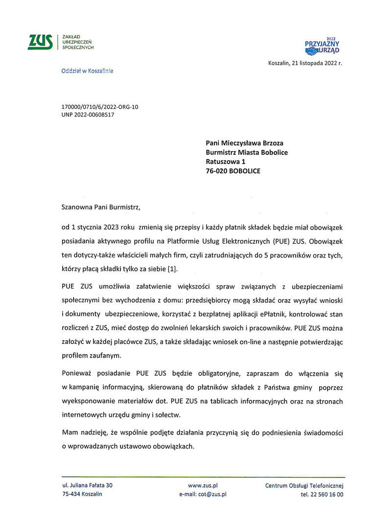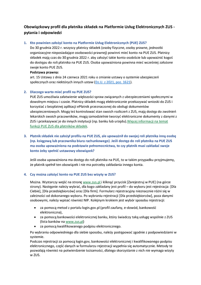 Zakład Ubezpieczeń Społecznych Oddziała w Koszalinie informuje, iż od 1 stycznia 2023 r. zmieniają się przepisy i każdy płatnik składek będzie miał obowiązek posiadania aktywnego profilu na Platformie Usług Elektronicznych (PUE) ZUS. Obowiązek ten dotyczy - także właścicieli małych firm, czyli zatrudniających do 5 pracowników oraz tych, którzy płacą składki za siebie.