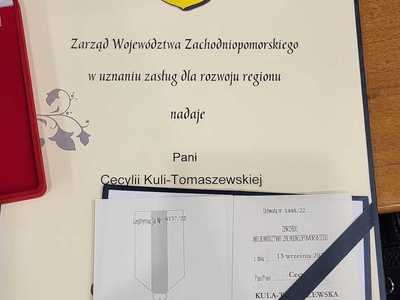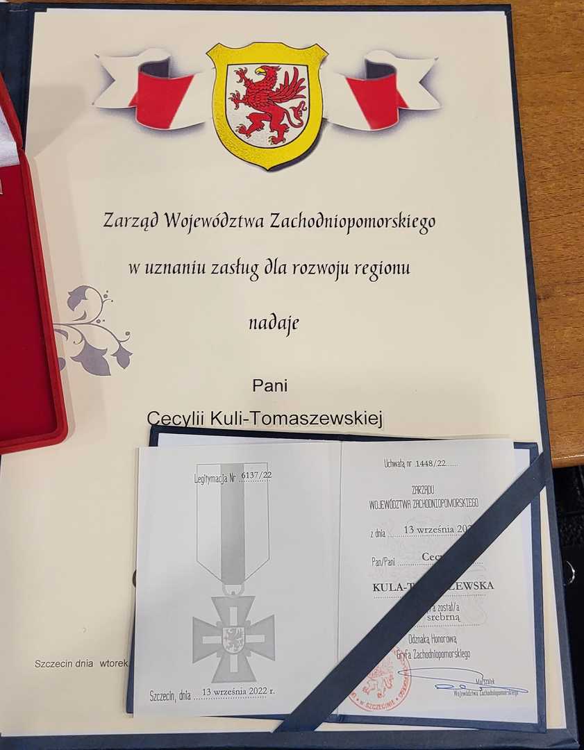 30 listopada podczas Sesji Rady Miejskiej Wicemarszałek Województwa Zachodniopomorskiego Tomasz Sobieraj wraz z Burmistrz Bobolic Mieczysława Brzoza na mocy Uchwały Nr 1448/22 z dnia 13 września 2022 r. Zarządu Województwa Zachodniopomorskiego wręczyli Pani Cecylii Kuli -Tomaszewskiej Srebrną Honorową Odznakę Gryfa Zachodniopomorskiego w uznaniu zasług dla rozwoju Pomorza Zachodniego.