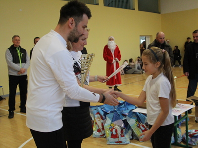 Na zakończenie turnieju każdy uczestnik otrzymał paczkę mikołajkową i pamiątkową koszulkę, a każda szkoła puchar, dyplom oraz piłkę do koszykówki. Nagrody te nie byłyby możliwe gdyby nie dobre serca naszych darczyńców. W tym roku w rolę Świętego Mikołaja wcielili się: Gmina Bobolice oraz Pani Burmistrz Mieczysława Brzoza, Pani Dyrektor Szkoły Podstawowej w Dargini Anita Jasińska, Sołectwo Dargiń i Dobrociechy wraz z Sołtysami - Ireneuszem Bednarczykiem i Robertem Trojanowskim, Miejsko Gminny Ośrodek Pomocy Społecznej oraz nasi pozostali sponsorzy: Nadleśnictwo Bobolice, Usługi Transportowe – Pan Dariusz Kasprzycki, Goodvalley Agro Spółka – Pan Maciej Ostrowski, Ziptrans Bobolice – Pan Paweł Marciniewski, Radny Powiatowy – Pan Kamil Jesionowski, Radni Miejscy – Pani Agnieszka Kurpiewska i Pan Piotr Adamus. Szczególne podziękowania należą się również Pani Marceli Kusz, która sprawowała opiekę medyczną w trakcie trwania turnieju oraz uczniom pomagającym przy organizacji tego eventu.