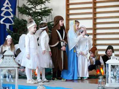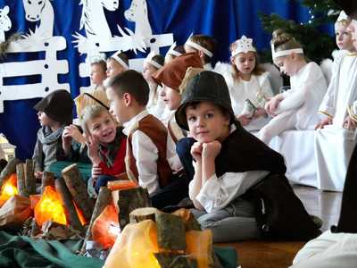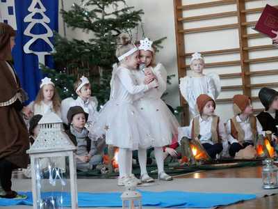 W dniu 14.12.2022r. w Przedszkolu w Bobolicach odbyły się Jasełka, którezaprezentowały dzieci z grupy,, Tygryski" i ,, Biedronki". Wychowankowie zostaliprzygotowani przez Panie Antoninę Kustrzycką oraz Irenę Staszczak. Na występy przybyli licznie zaproszeni goście: Burmistrz Bobolic Mieczysława Brzoza, Przewodniczący Rady Miejskiej Franciszek Łobocki, Wizytatorzy z Delegatury Kuratorium Oświaty w Koszalinie starszy wizytator Pani Małgorzata Gał oraz Katarzyna Pyrzyńska, dyrektorzy przedszkoli oraz rodzice. Celem tej uroczystości było wprowadzenie uczestników w radosną atmosferę Świat Bożego Narodzenia oraz wzmocnienie więzi emocjonalnej z rodziną. Występom towarzyszyła przepięknie przygotowana sceneria. Mali aktorzy odważnie i śmiało zaprezentowali się w swoich rolach. Dzieci przecudownie wyglądały w kostiumach postaci z Jasełek, a byli to: Maryja, Józef, anioły, pasterze, królowie oraz chórek. Nasi artyści dziarsko i naturalnie śpiewali kolędy i pastorałki. Na koniec Jasełek dzieci złożyły życzenia Bożonarodzeniowe. Głos zabrała również Pani Burmistrz Bobolic Mieczysława Brzoza, która była oczarowana występami naszych wychowanków. Ponadto złożyła wszystkim życzenia z okazji zbliżających się Świat Bożego Narodzenia. Na zakończenie Pani Dyrektor Przedszkola w Bobolicach Anna Kustrzycka-Broda wręczyła małym aktorom słodkości. Krótko mówiąc było super !!!