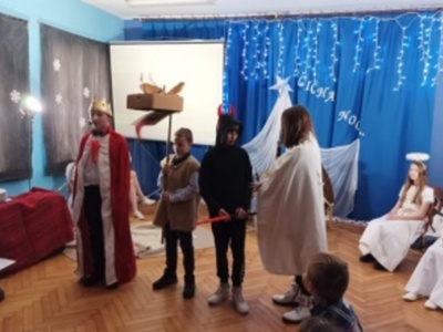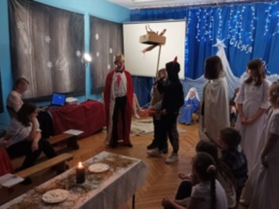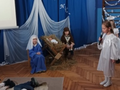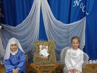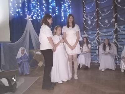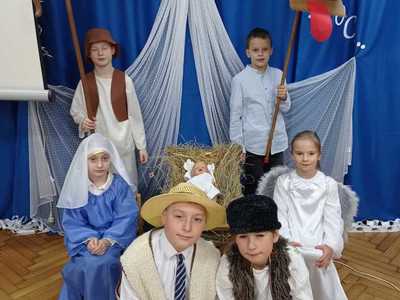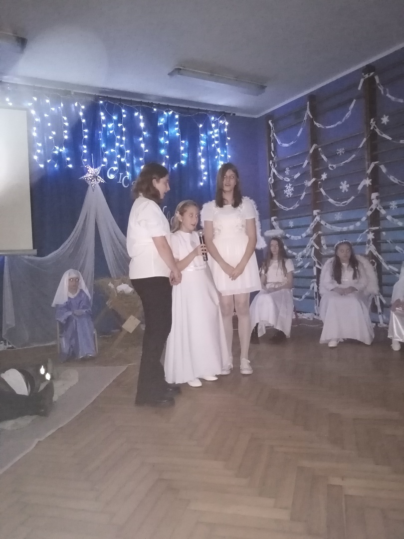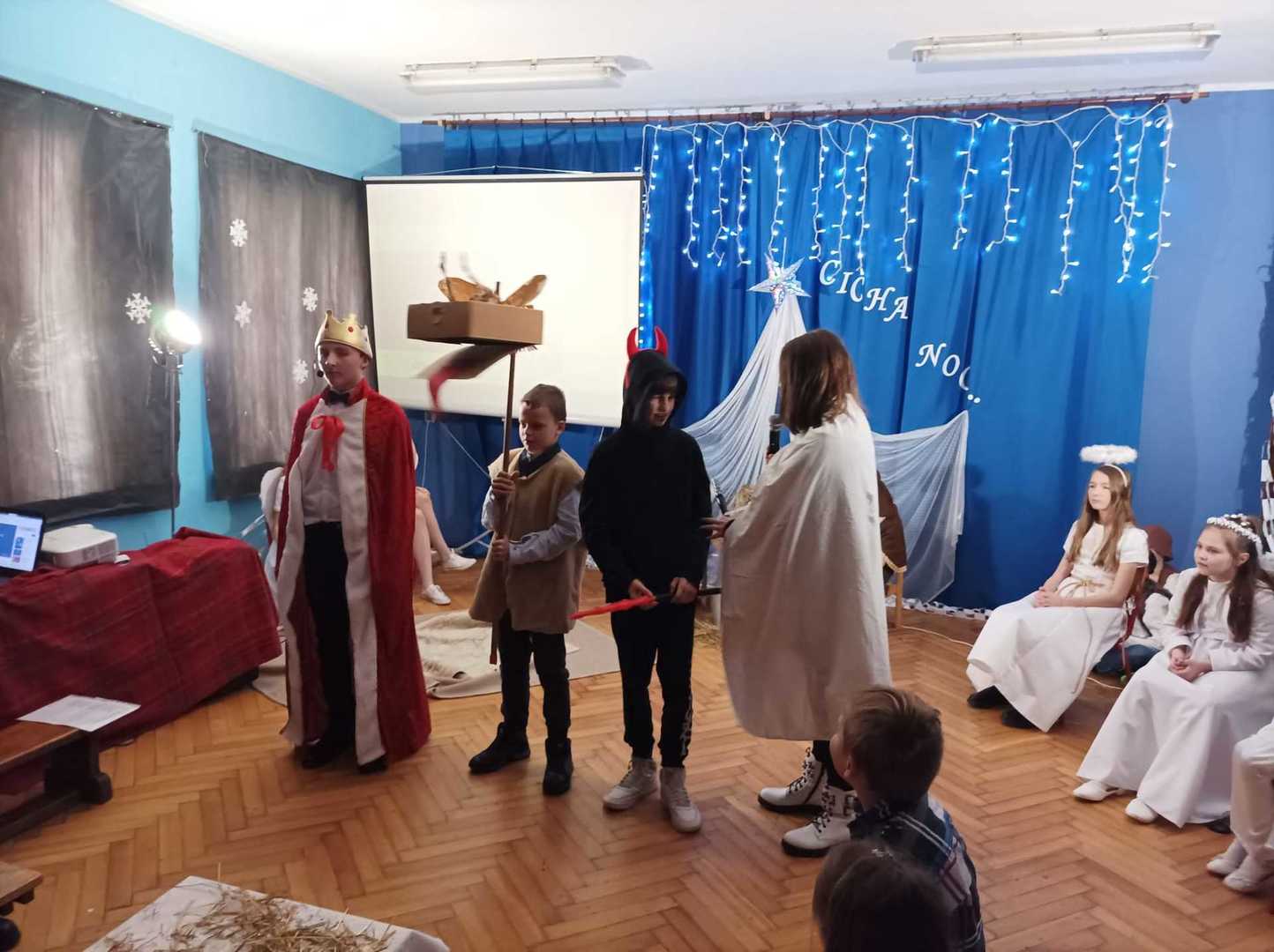Tego dnia uczniowie z młodszych klas wcielili się w role: Aniołów obwieszczających radosną nowinę, Pasterzy, którzy szukali drogi do Betlejem oraz Kolędników, którzy rozweselając zaproszonych gości wprowadzili ich w magiczny, świąteczny nastrój. Podczastego uroczystego spotkania swoją obecnością zaszczycili nas: Pani Wiesława Pawłowska – sołtys wsi Stare Borne oraz Pan Marek Boczek – sołtys wsi Drzewiany. W tym wyjątkowym dla wszystkich dniu nie obyło się bez wspólnego śpiewania kolęd, pastorałek oraz dzielenia się opłatkiem.
