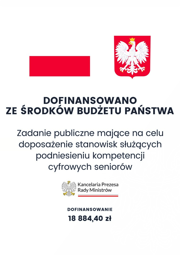 Stowarzyszenie Wspierania Inicjatyw Społecznych w Bobolicach z końcem roku pozyskało dofinansowanie na realizację zadania publicznego dotyczącego doposażenia stanowisk służących podniesieniu poziomu kompetencji cyfrowych seniorów w okresie od 1 listopada 2022 r. do 31 grudnia 2022 r. Zadanie dofinansowane jest z budżetu Kancelarii Prezesa Rady Ministrów.
