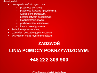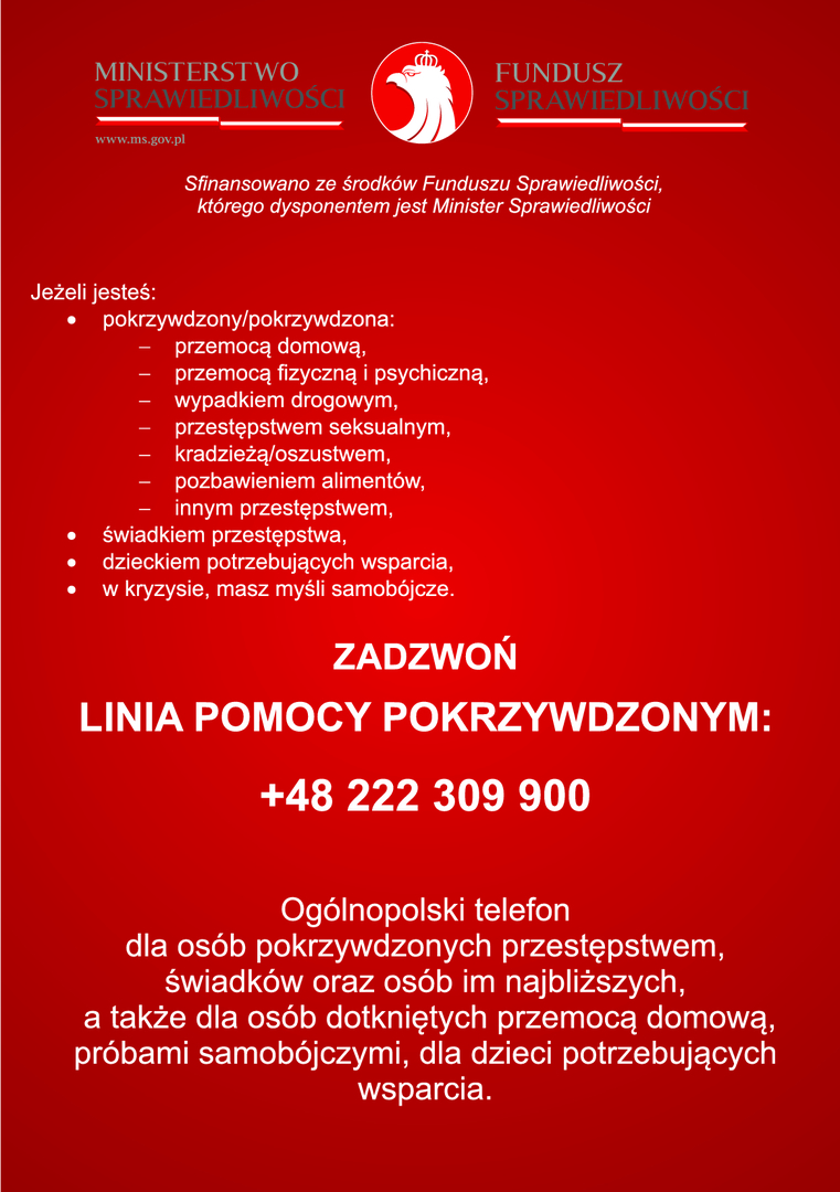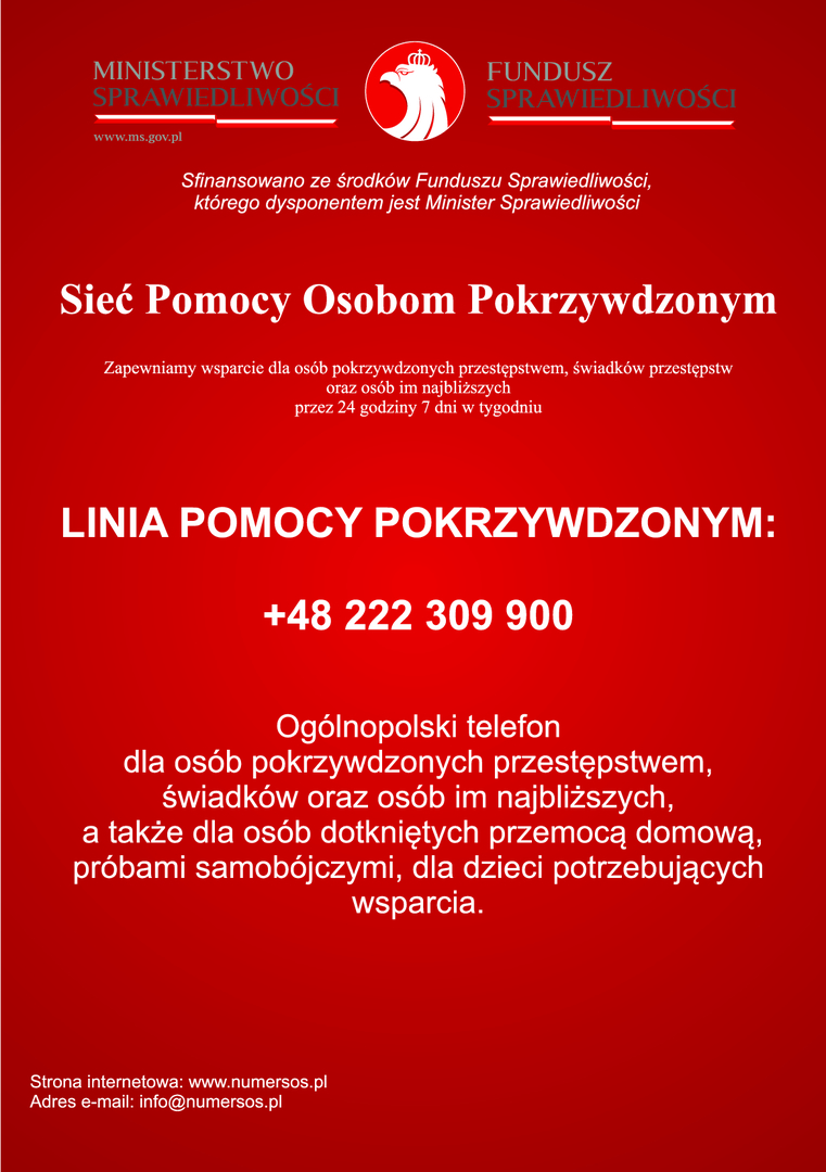 Linia pomocy pokrzywdzonym: +48 222 309 900