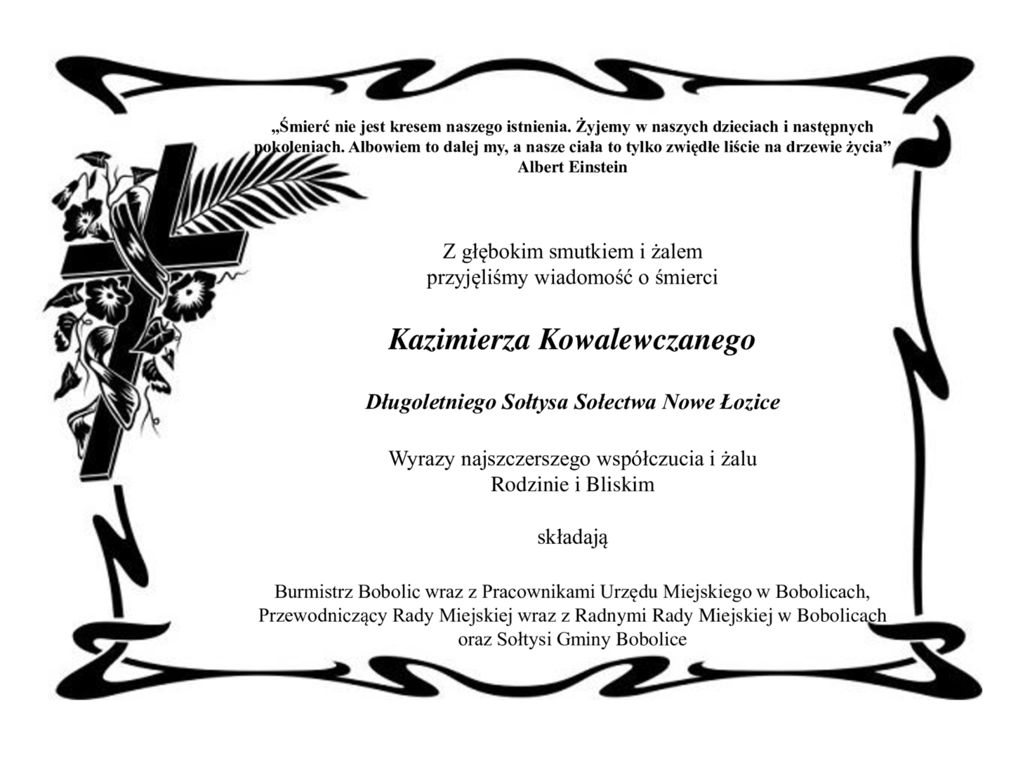 Kondolencje dla Rodziny i bliskich Pana Kazimierza Kowalewczanego
