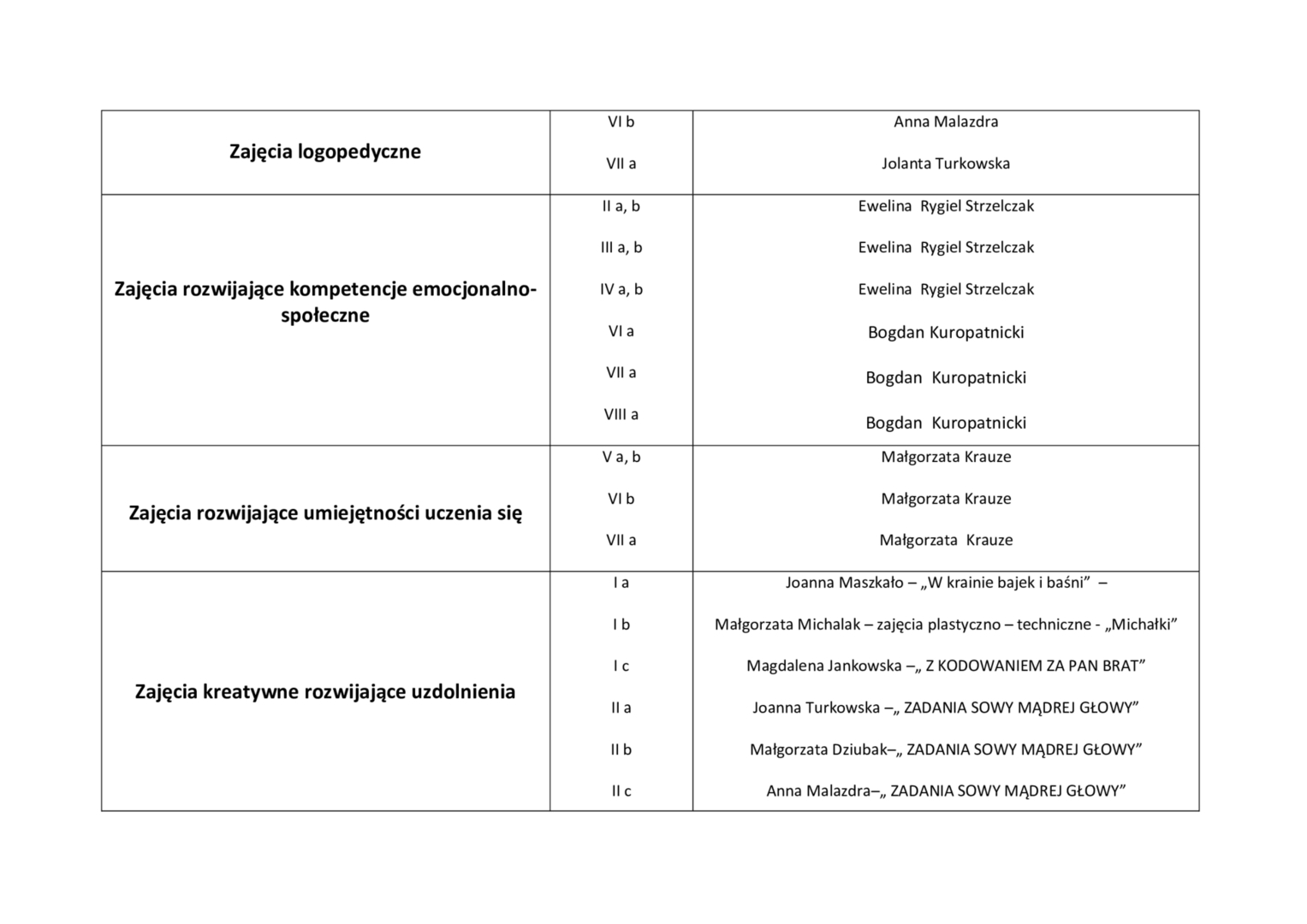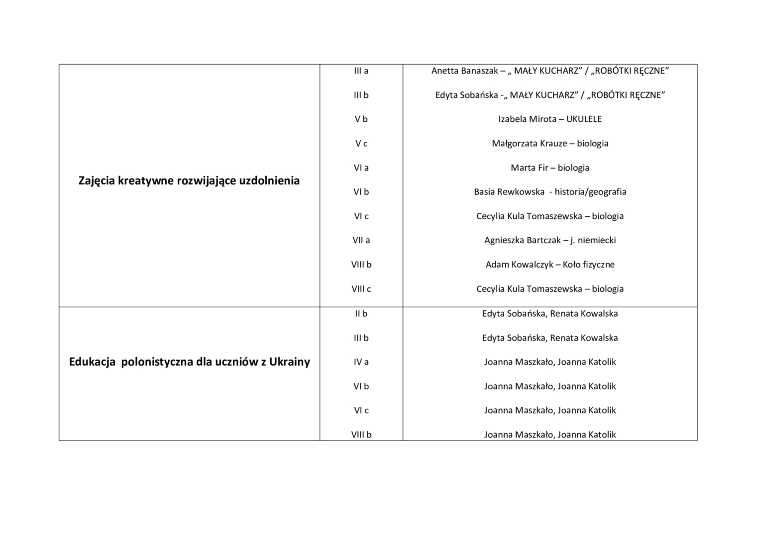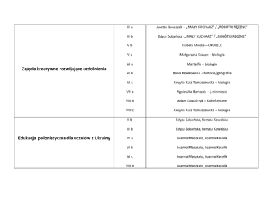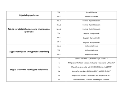 OFERTĘ ZAJĘĆ POZALEKCYJNYCH/ POPOŁUDNIOWYCH I ZACHĘCAMY DO UDZIAŁU.