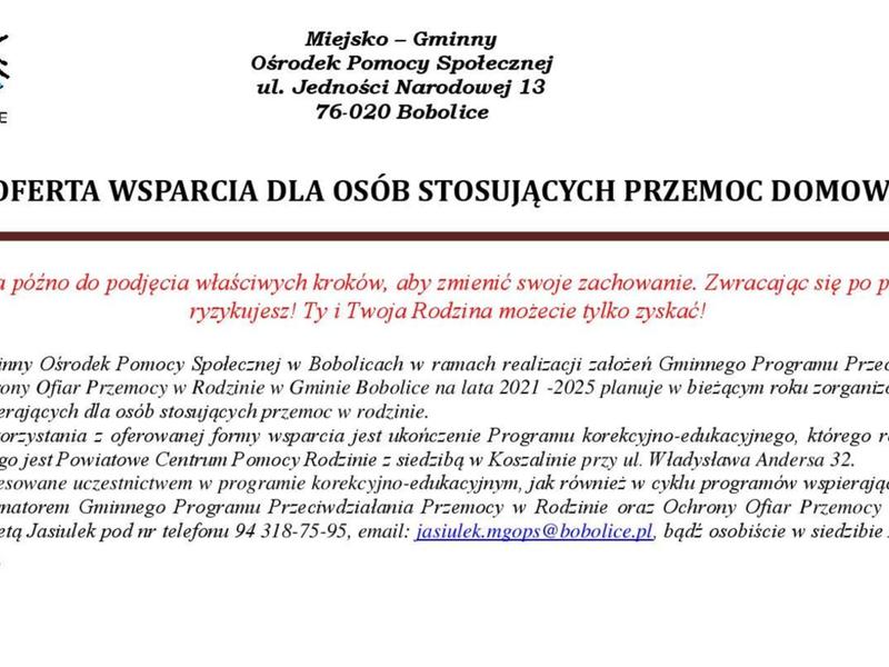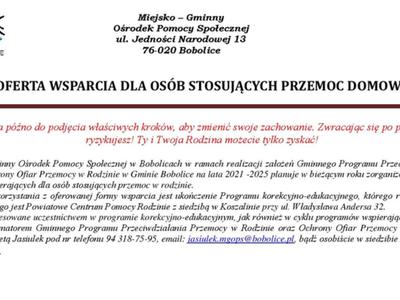 OFERTA WSPARCIA DLA OSÓB STOSUJĄCYCH PRZEMOC DOMOWĄ