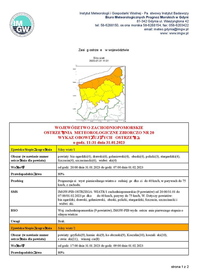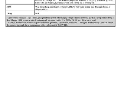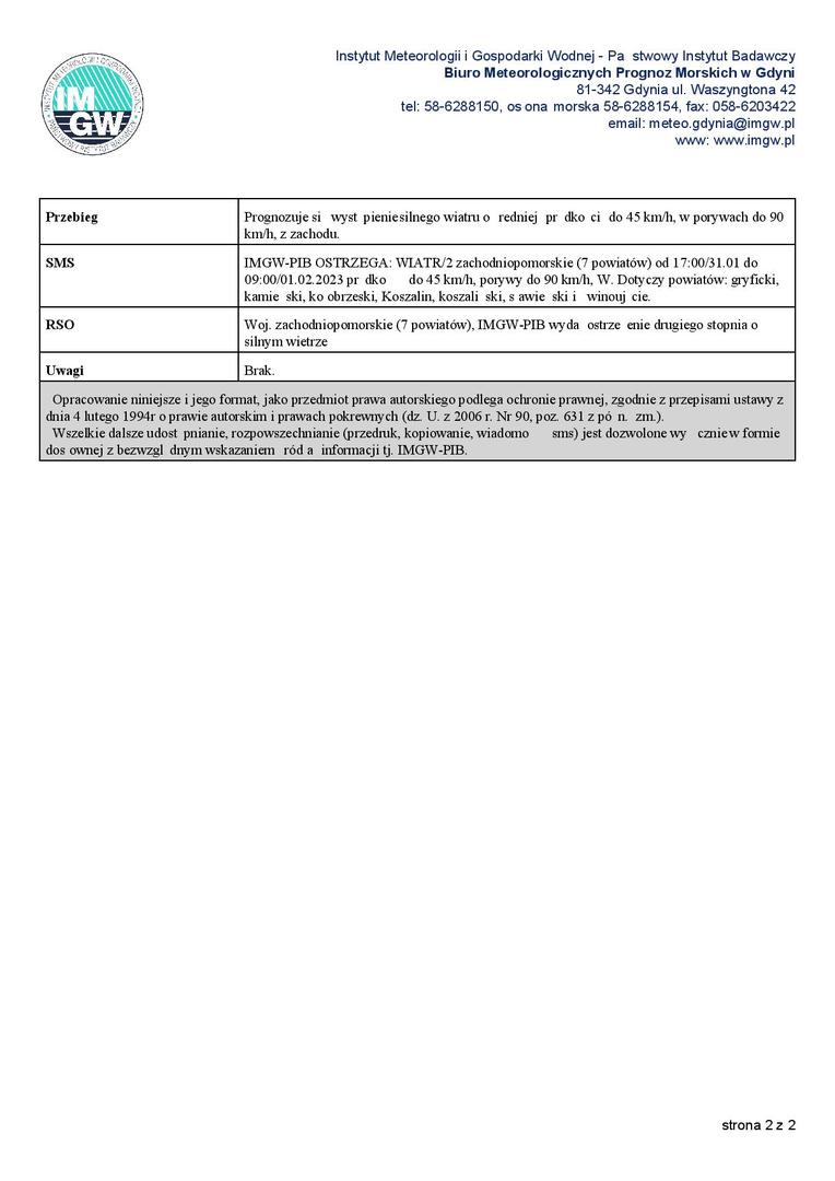 Prognozuje się wystąpienie silnego wiatru o średniej prędkości do 45 km/h, w porywach do 90 km/h, z zachodu.