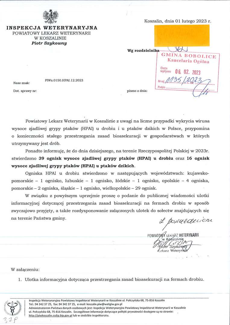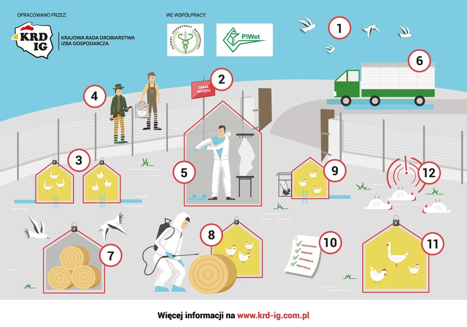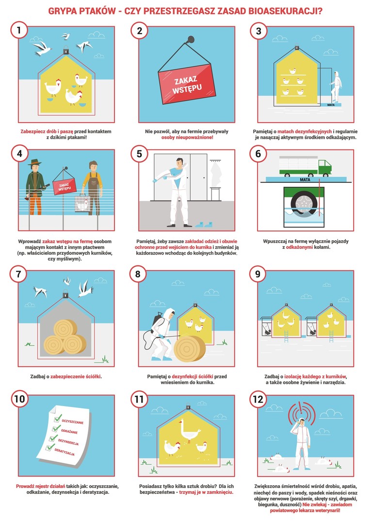 Ze względu na wzrost występowania ognisk grypy ptaków u drobiu na terenie całego kraju Powiatowy Lekarz Weterynarii w Koszalinie prosi o przestrzeganie zasad bioasekuracji, pozwalających zminimalizować ryzyko wirusa grypy ptaków.