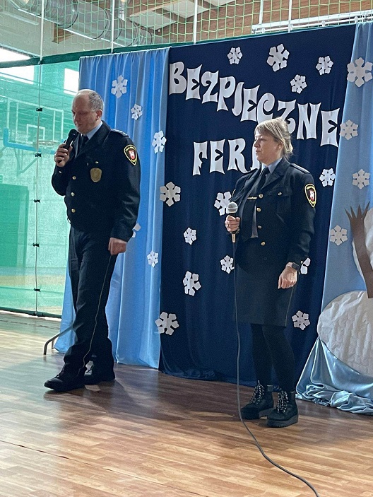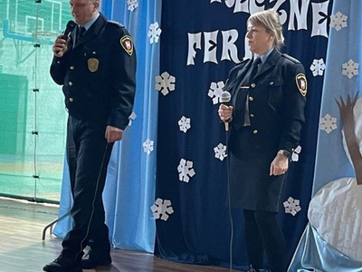 Zasady bezpiecznego zachowania w trakcie zimowego wypoczynku przedstawili uczniom przedstawiciele Straży Miejskiej w Bobolicach, p. A. Nowicka i p. M. Kowalski, którzy zachęcili uczniów do przestrzegania zasad bezpiecznego zachowania , bo tylko umiar , zdrowy rozsądek i ostrożność pozwolą cieszyć się czasem wolnym i bezpiecznie spędzić ferie.