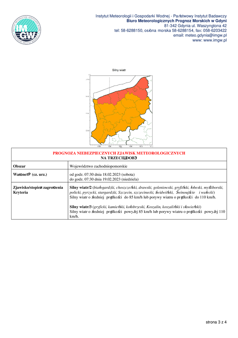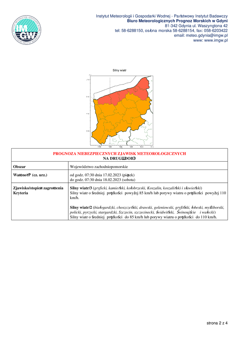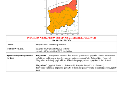 UWAGA OSTRZE呕ENIE METEOROLOGICZNE - SILNY WIATR