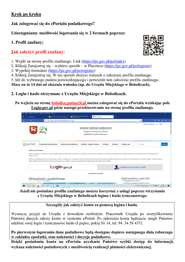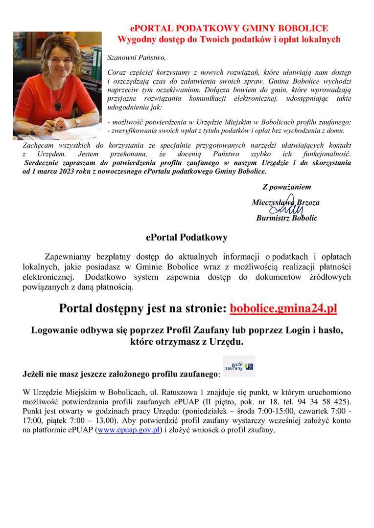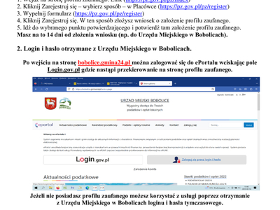 - możliwość potwierdzenia w Urzędzie Miejskim w Bobolicach profilu zaufanego;
