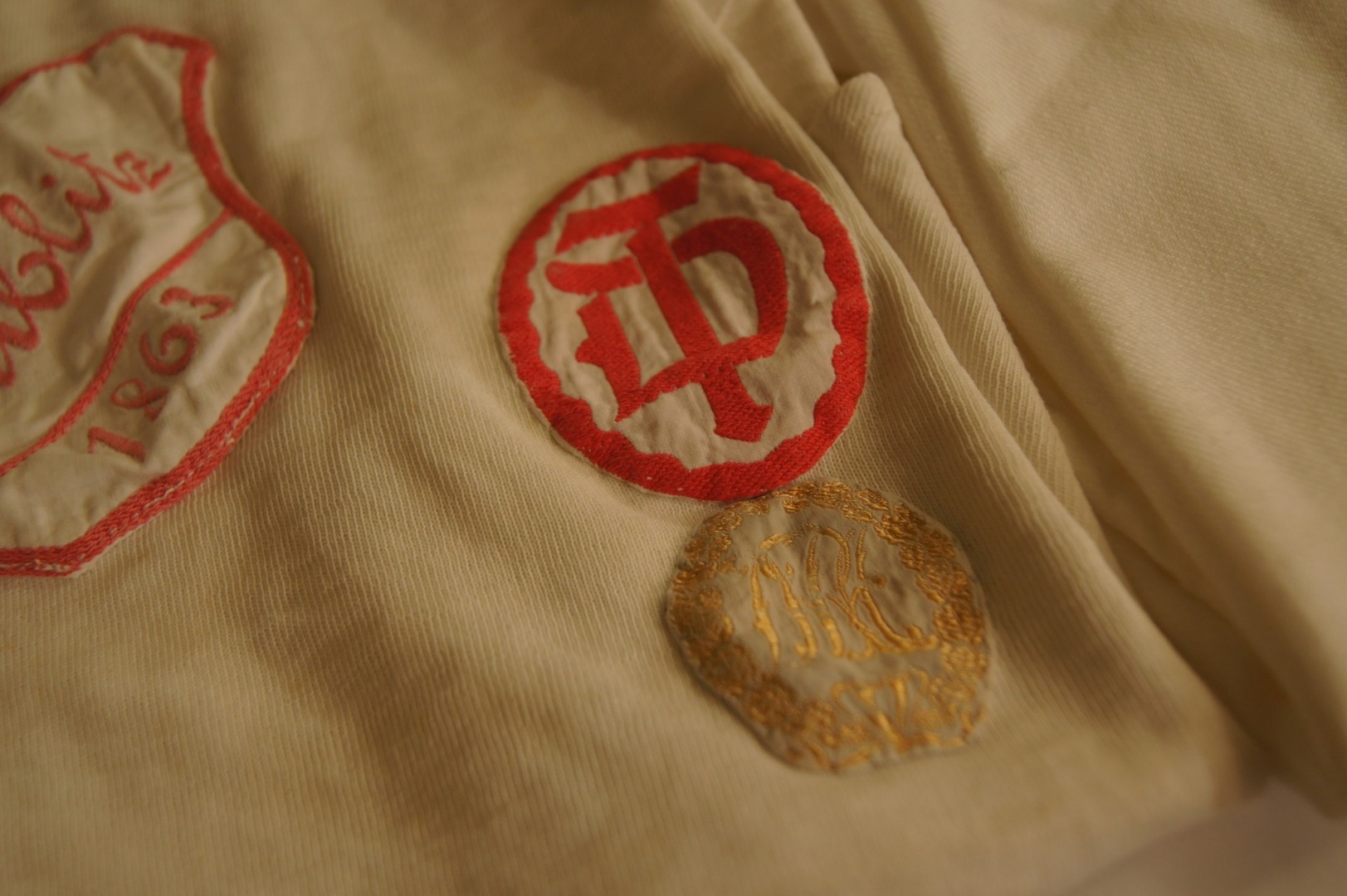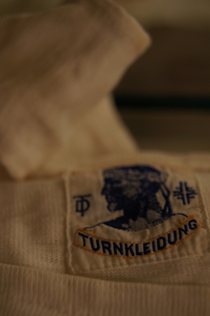 Na koszulce widzimy również ręcznie haftowane późniejsze symbole D.T. (Deutsche Turnerschaft) oraz szytą złotą nicią odznakę DRA, co świadczy, że pochodzi ona sprzed 1934 roku.
