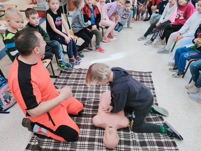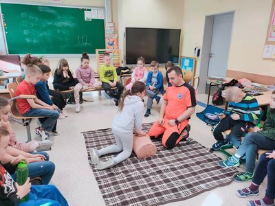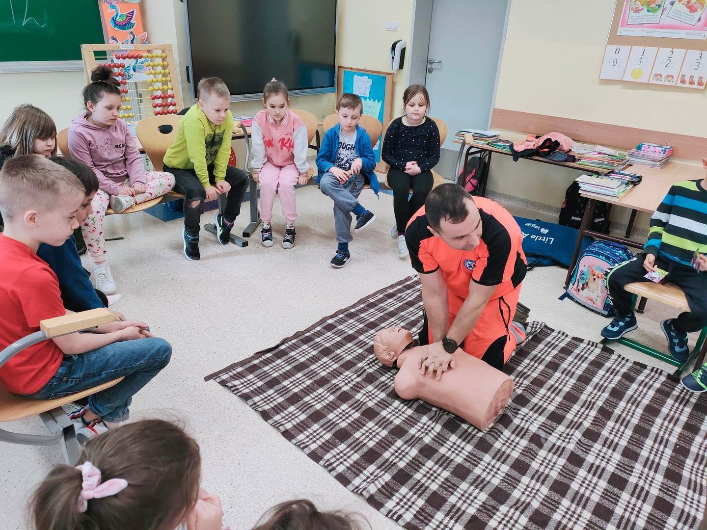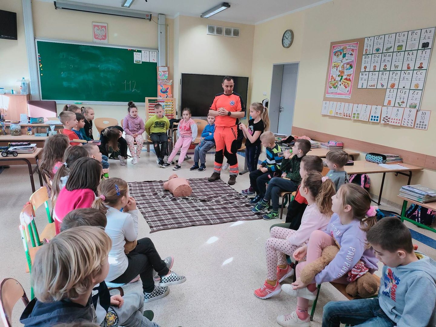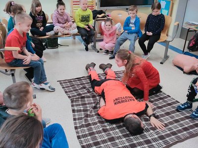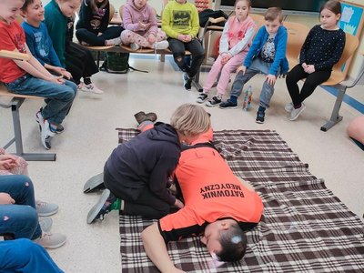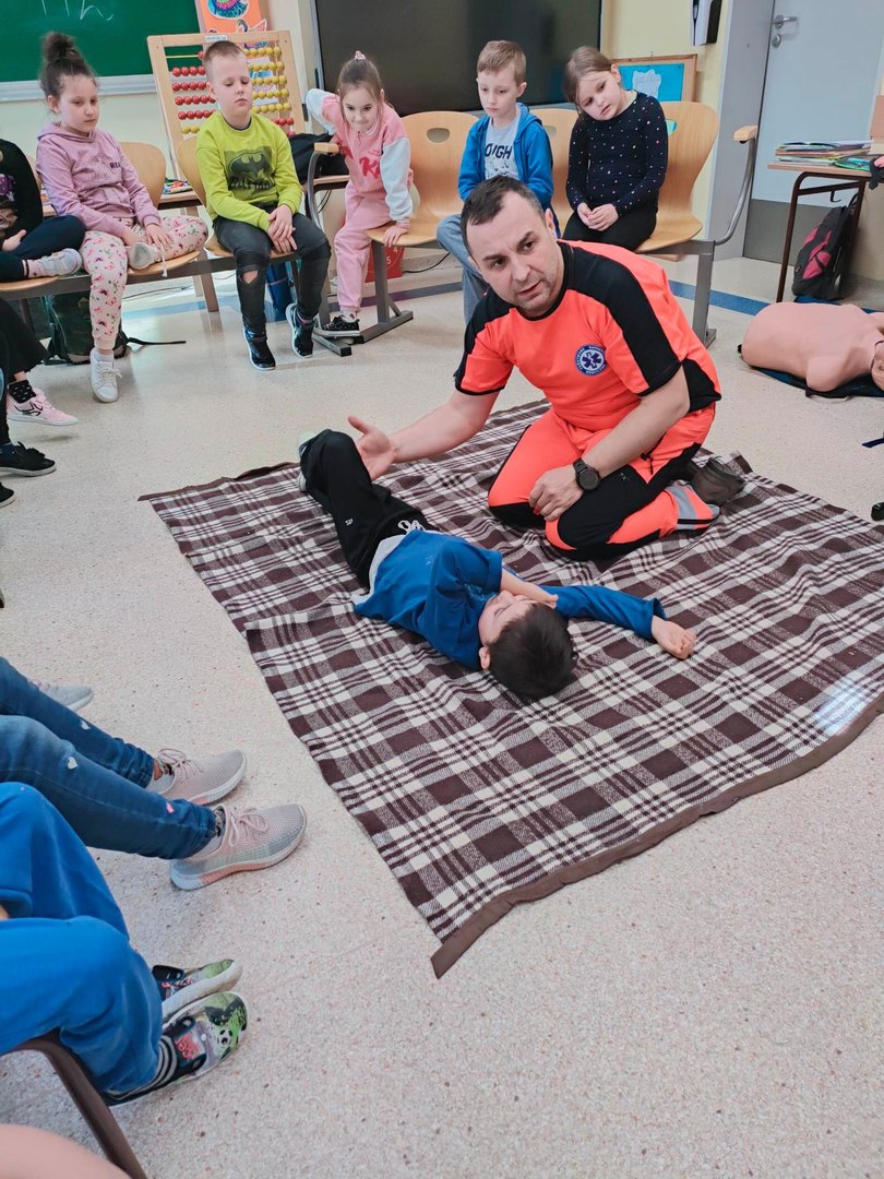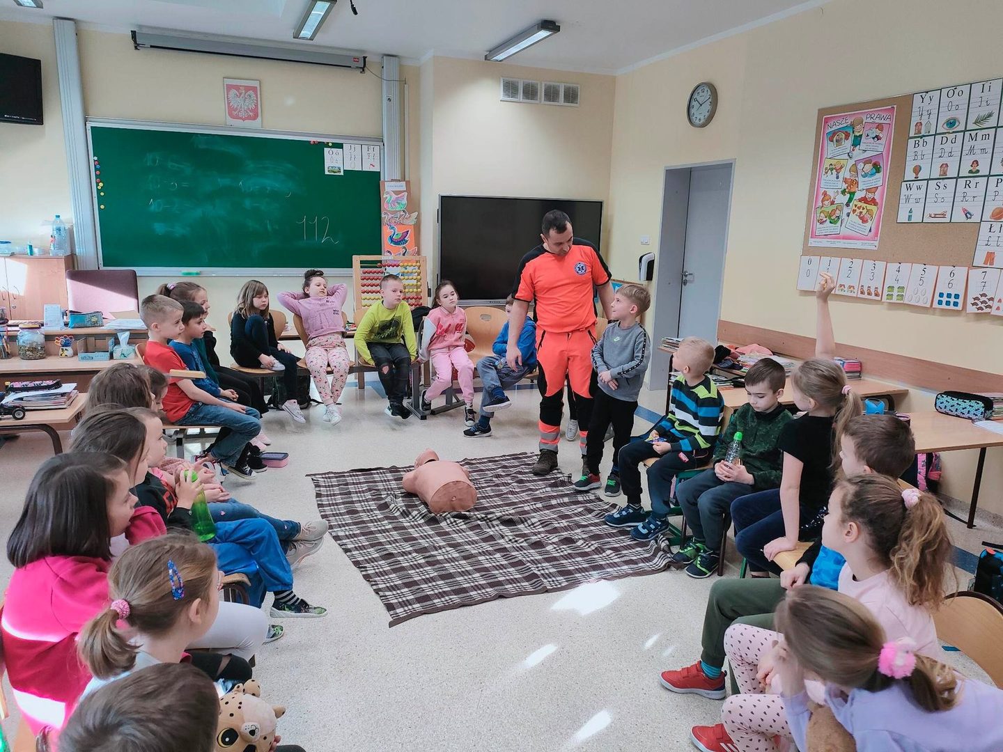 9 lutego 2023 roku uczniowie klas IA i IC Szkoły Podstawowej im. Henryka Sienkiewicza w Bobolicach wzięli udział w spotkaniu z ratownikiem medycznym Panem Jarkiem Bączkowskim. Celem było pokazanie dzieciom jak należy pomóc nieprzytomnej osobie. Nauczyli się obracać poszkodowanego z brzucha na plecy, ułożyć człowieka w pozycji bezpiecznej do czasu przyjazdu karetki oraz co robić, gdy ktoś zasłabnie. Poćwiczyli na fantomieresuscytację. Zajęcia były bardzo ciekawe. Dzieci uważnie słuchały i mocno się zdziwiły, gdy w ćwiczeniach drobny chłopczyk z pierwszej klasy bez problemu obrócił z brzucha na plecy naszego Pana ratownika. Dziękujemy Panu Jarkowi.