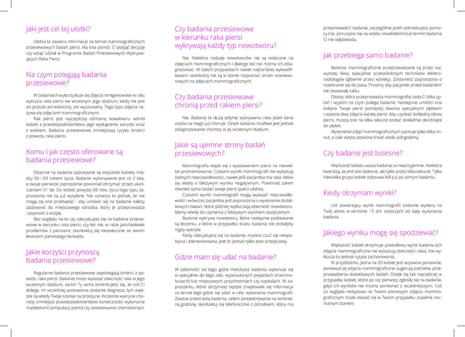 Bezpłatnymi badaniami mammograficznymi objęte są Panie od 50 do 69 roku życia (rocznik 1954-1973).