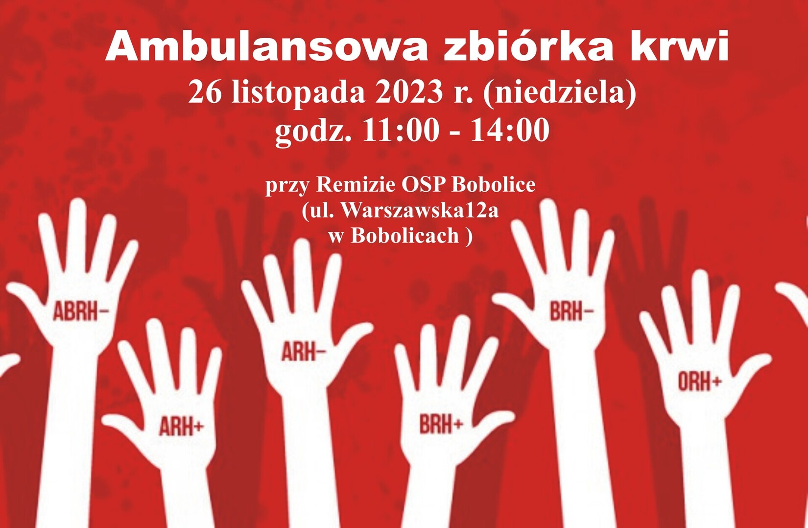 W imieniu organizatorów: Krzysztof Orlikowski Radnego Powiatowego oraz Piotr Adamus Radnego Rady Miejskiej w Bobolicach zapraszamy nie tylko Mieszkańców Gminy Bobolice do udziału w akcji: Ambulansowej Zbiórce Krwi.
