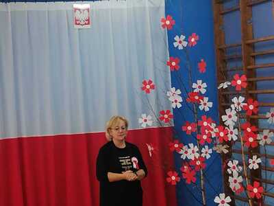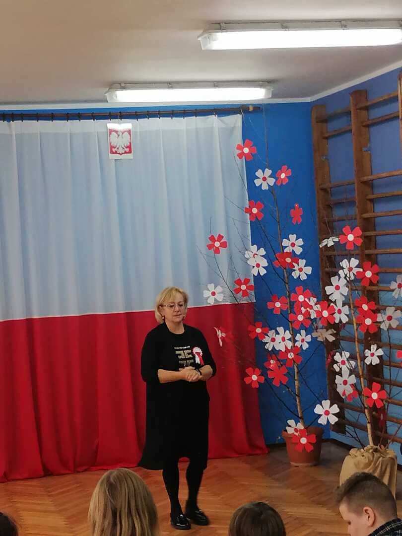 ŚWIĘTO ODZYSKANIA NIEPODLEGŁOŚCI to jedno z najważniejszych świąt państwowych w Polsce. Co roku z tej okazji w całym kraju mają miejsce uroczystości, które upamiętniają to wydarzenie. Dyrektor SP Iwona Golas w swoim wystąpieniu kilkakrotnie podkreślała rangę istotnych wydarzeń historycznych i ich związek ze współczesnością.