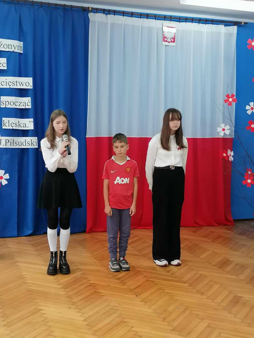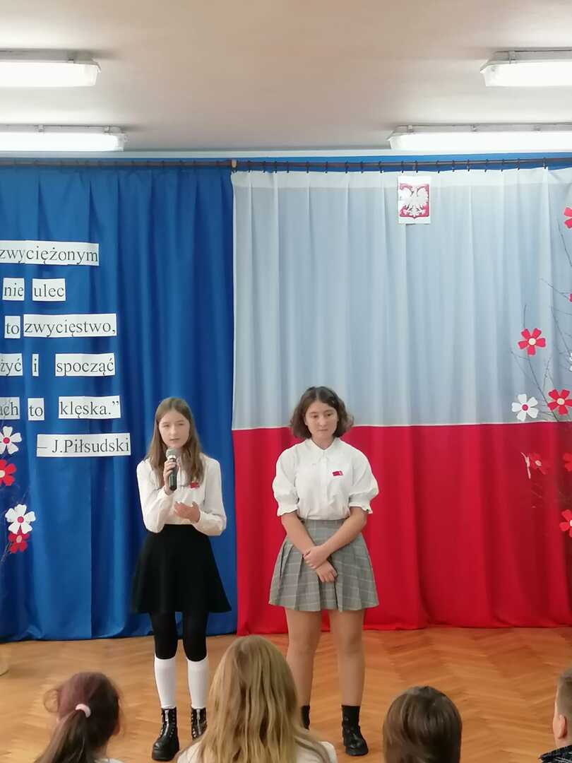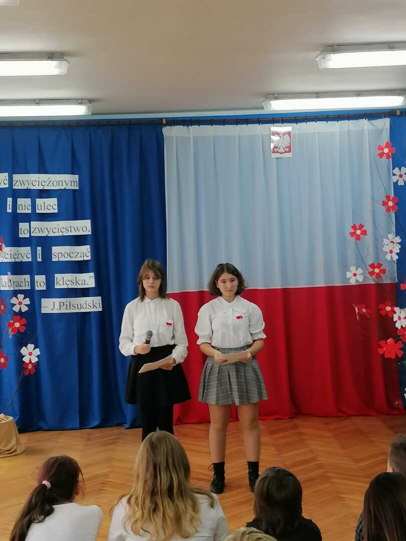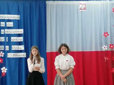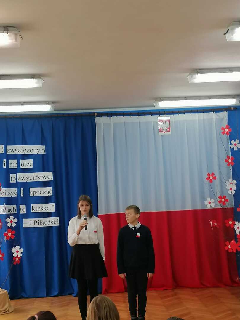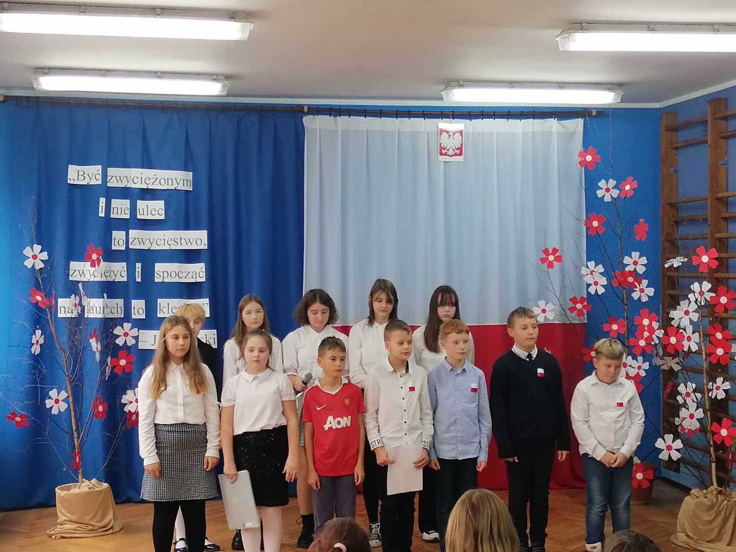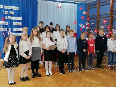 Uczniowie naszej placówki przygotowali programu poetycko-muzyczny, którego tematyka była ściśle związana z historią odzyskania niepodległości przez Polskę. Podczas uroczystej akademii wielokrotnie uświadamialiśmy sobie, jak istotne treści przekazali nam autorzy wierszy, które ukazywały bohaterstwo, waleczność, miłość i okrucieństwo lat niewoli.