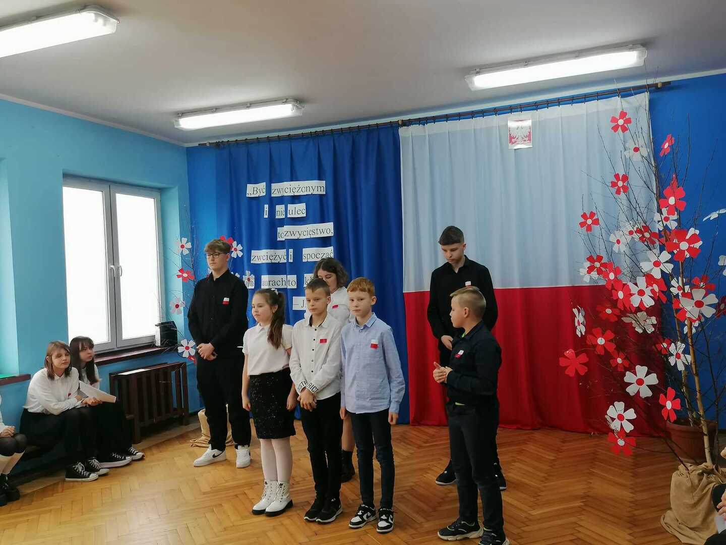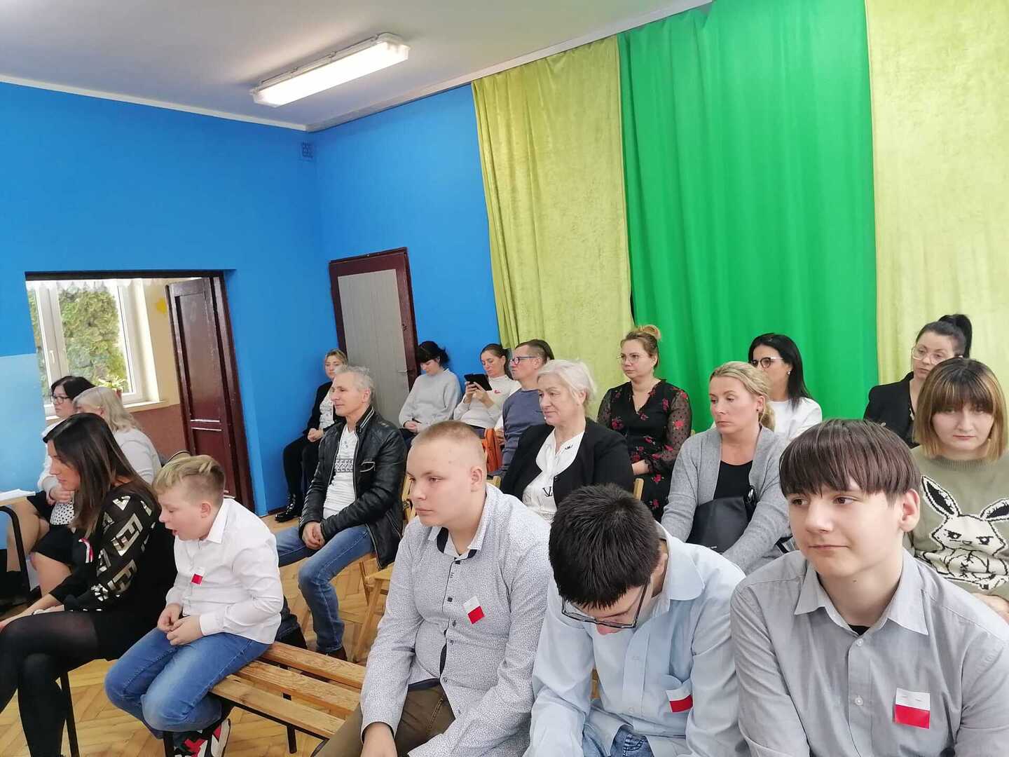 Uczniowie swoją recytacją przypomnieli wielkie okrucieństwo lat niewoli, w sposób szczególny wpłynęli na stronę uczuciową wszystkich zebranych. Prawda, honor, braterstwo i ojczyzna – to słowa, które często wybrzmiewały w recytowanych wierszach. Publiczność nagrodziła wykonawców gromkimi brawami, a przesłanie uroczystości, że świętowanie rocznic ma sens, potwierdziło naszą narodową tożsamość. Program artystyczny, jego oprawa plastyczna zostały przygotowane przez: p. R. Bobowicz i p. M. Mokrzycką-Karepin.