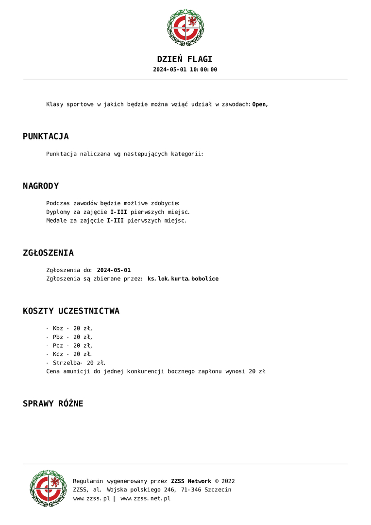 Zawody odbędą się 1 maja 2024 r. o godz. 10.00