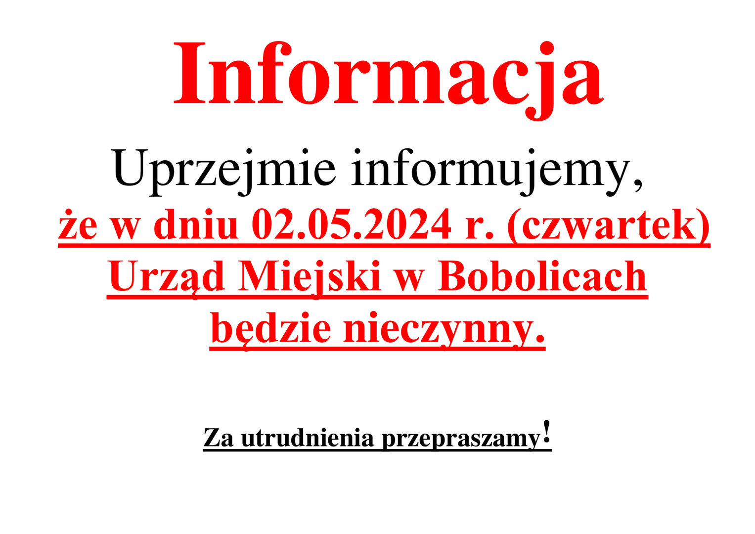 Informacja o pracy urzędu 2 maja