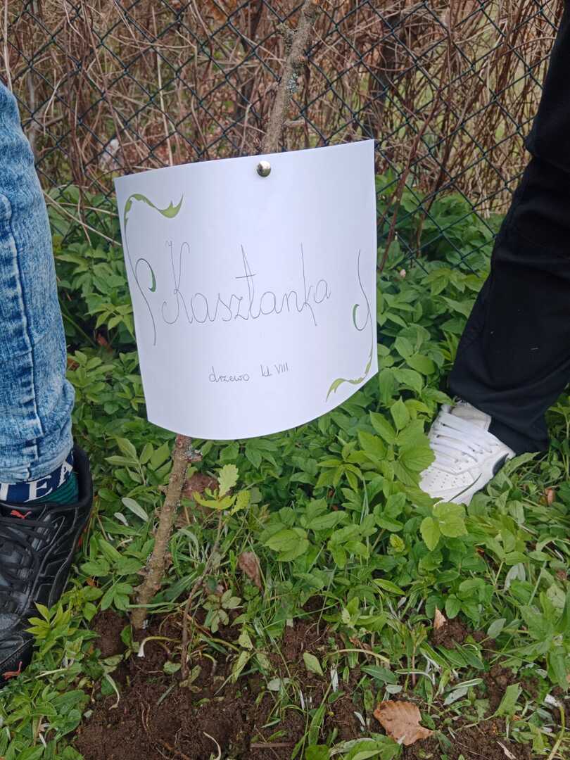 Z okazji Dnia Ziemi uczniowie naszej szkoły postanowili zasadzić wokół szkoły różne gatunki drzew liściastych. Każda klasa musiała najpierw nadać swojemu drzewu imię.