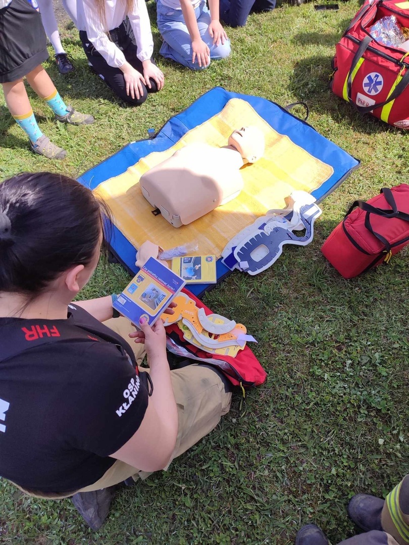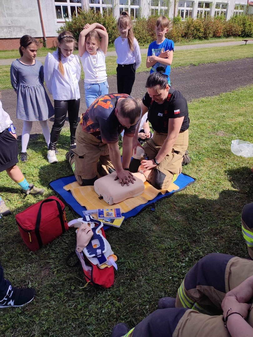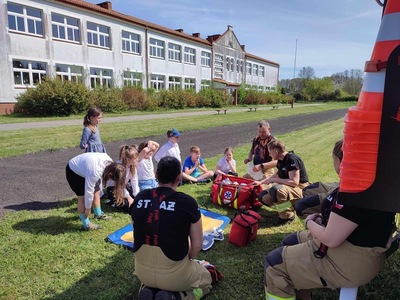 Podczas ostatnich zajęć w kwietniu wychowanków PWD „Promyk” odwiedzili strażacy Ochotniczej Straży Pożarnej w Kłaninie 🧑🚒 . Dzieci miały okazję zobaczyć mężczyzn oraz kobiety w strażackich strojach. Goście zaprezentowali sprzęt, którym posługują się w codziennej pracy. Najważniejszym punktem spotkania było przeprowadzenie pogadanki na temat bezpieczeństwa oraz szkolenie z udzielania pierwszej pomocy przedmedycznej. Wychowankowie chętnie ćwiczyli na fantomie.