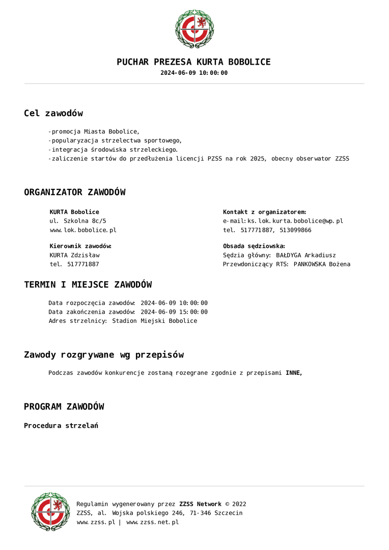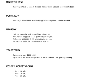 Zawody odbędą się 9 czerwca 2024 r. o godz. 10.00