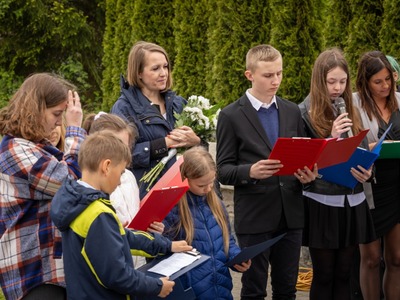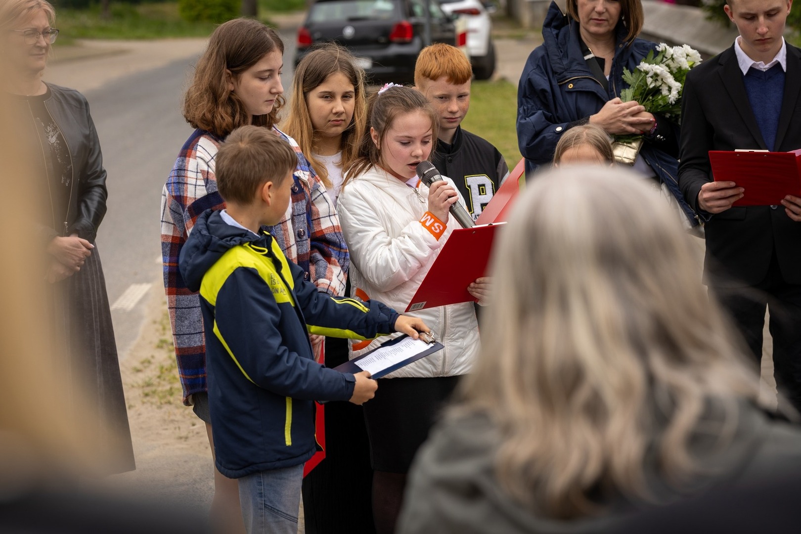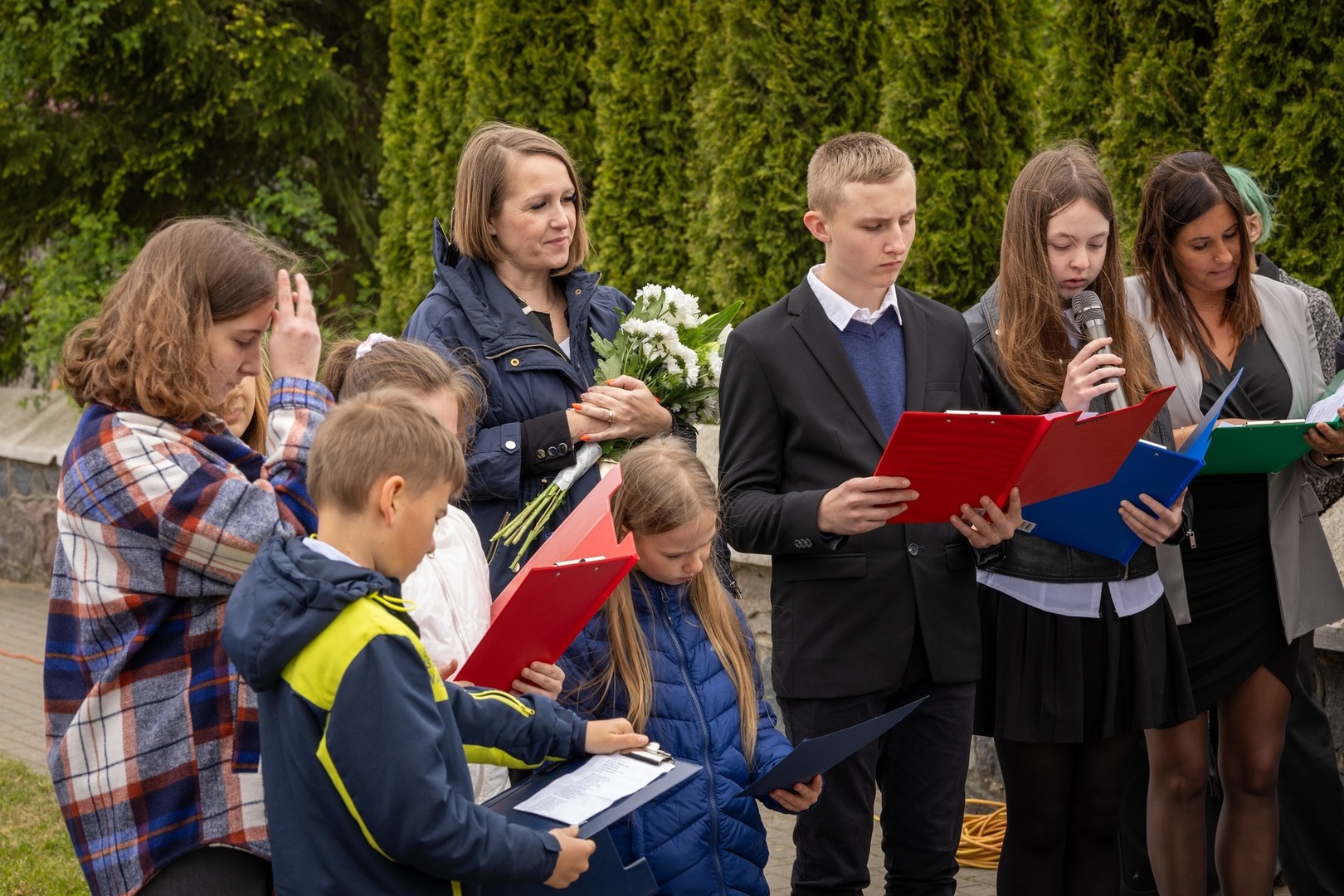 Podczas tego uroczystego spotkania uczniowie przybliżyli nam historię powstania miejsca pamięci oraz losy Augusta Vangenechtena, który wraz z innymi żołnierzami był jeńcem wojennym przebywającym w latach 1941 – 1945 w majątku Hohenborn Stare Borne. Uczniowie zaprezentowali również poezję dotyczącą tematyki wojennej. Na znak upamiętnienia tego wydarzenia pani Dyrektor, uczniowie oraz zaproszeni goście złożyli pod miejscem pamięci kwiaty oraz zapalili znicze.