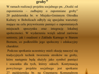 Realizacja Projektu socjalnego pn: ,,Ocalić od zapomnienia- Zadbajmy...