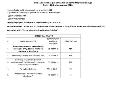 Lista projektów w ramach Budżetu Obywatelskiego na 2026 rok